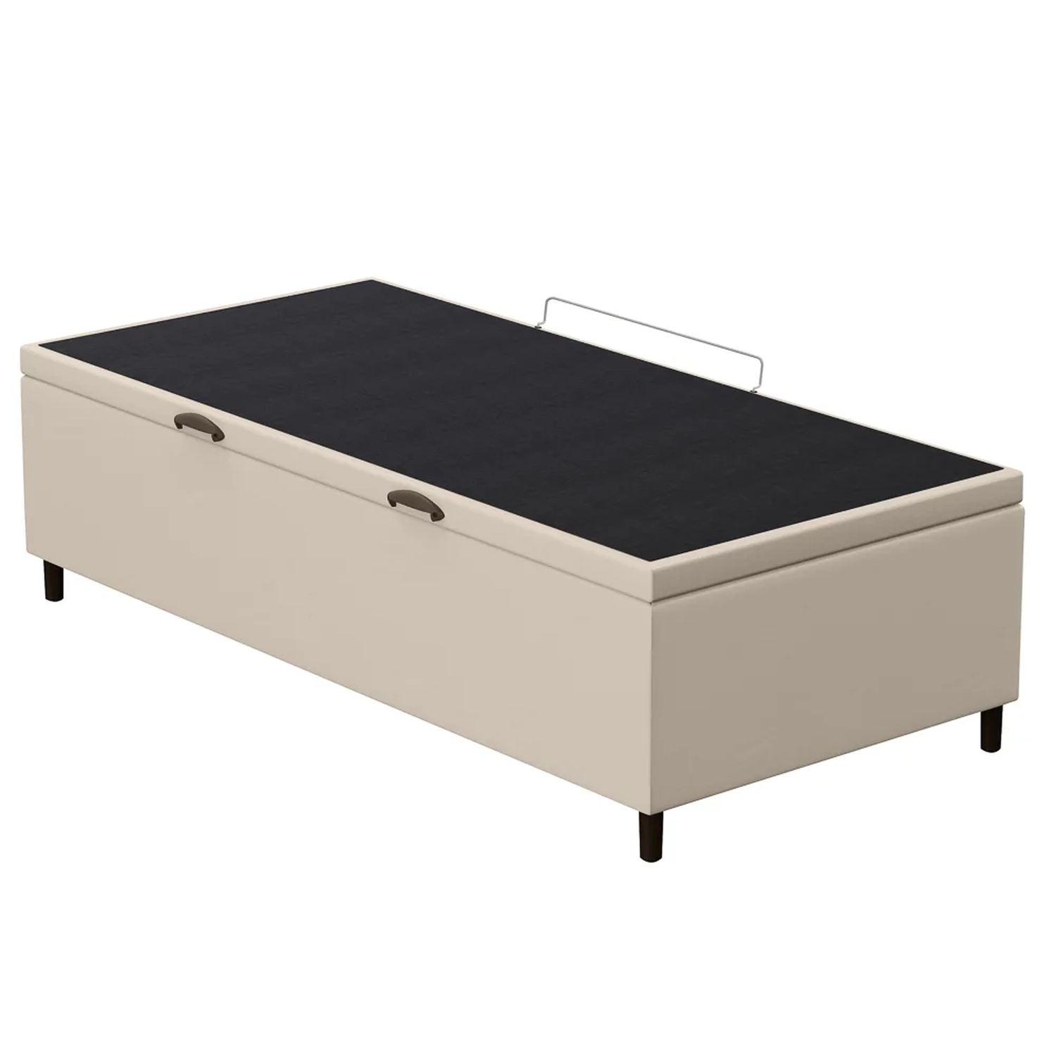 Com estrutura de madeira e revestimento em Sintético, essa base box baú é uma opção perfeita para complementar seu cantinho de descanso, principalmente se você tem um quarto de solteiro pequeno, pois o diferencial com certeza é o baú com mecanismo de abertura com pistão a gás e oferece um excelente espaço interno para guardar seus cobertores ou roupas de cama. Incrível, né? Inclusive possui pés de madeira, mas também conta com rodízios para facilitar a na hora da limpeza. Tenha mais espaço, organização e elimine de vez aquela bagunça insistente.