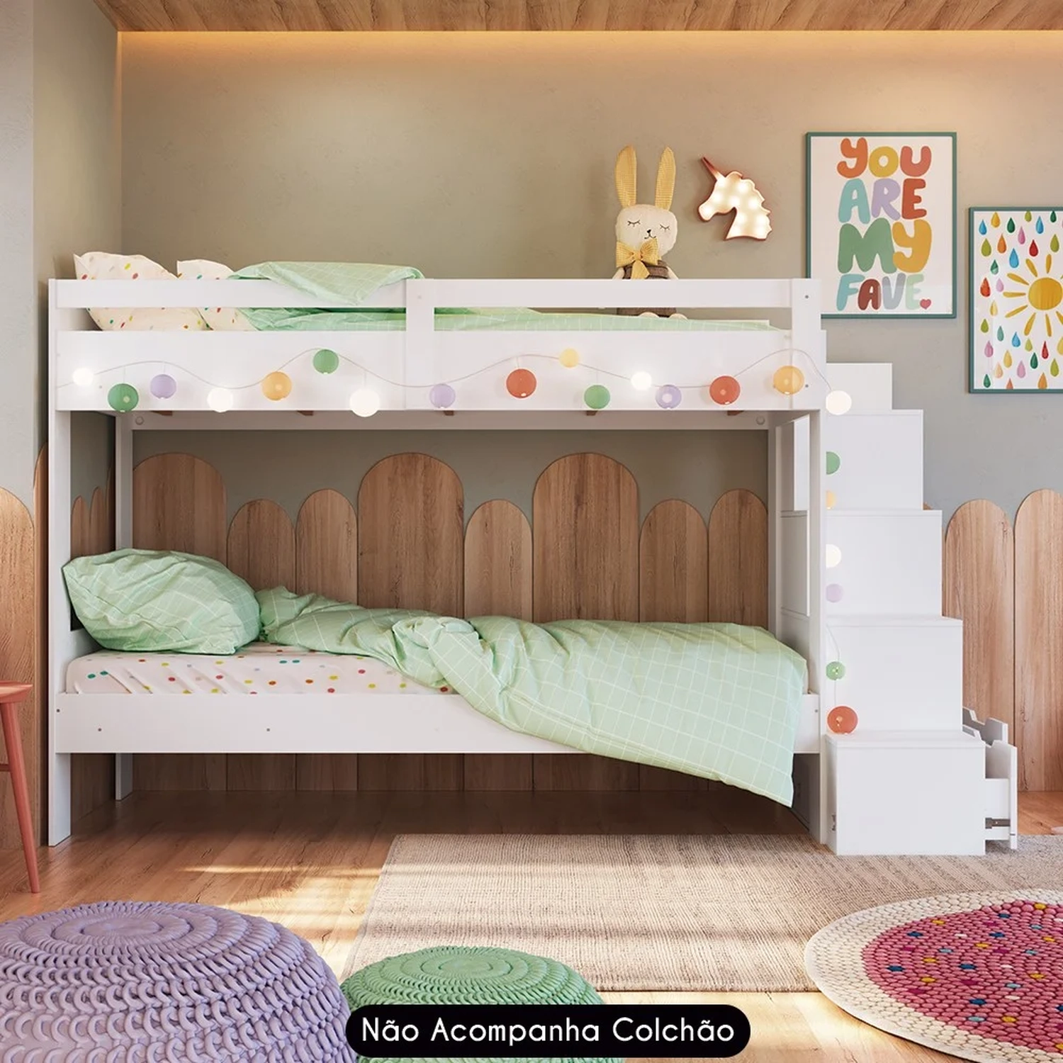 A Beliche Infantil Com Escada Nichos e Gavetas Infix C06 Branco, da Mpozenato, é uma excelente escolha para quem deseja maximizar o espaço disponível sem abrir mão de estilo e funcionalidade no Quarto Infantil.
