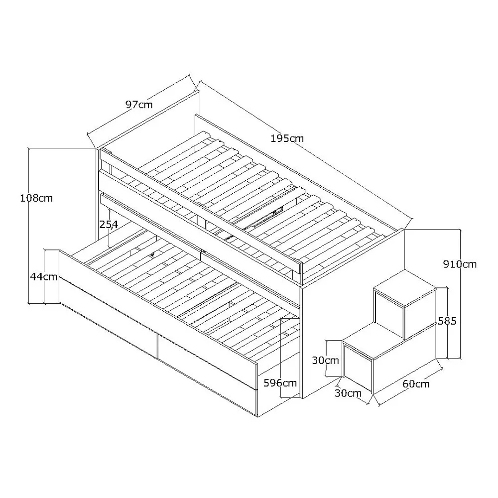 Escada com Gaveta e Porta: 30 x 58,5 x 60 cm (L x A x P).