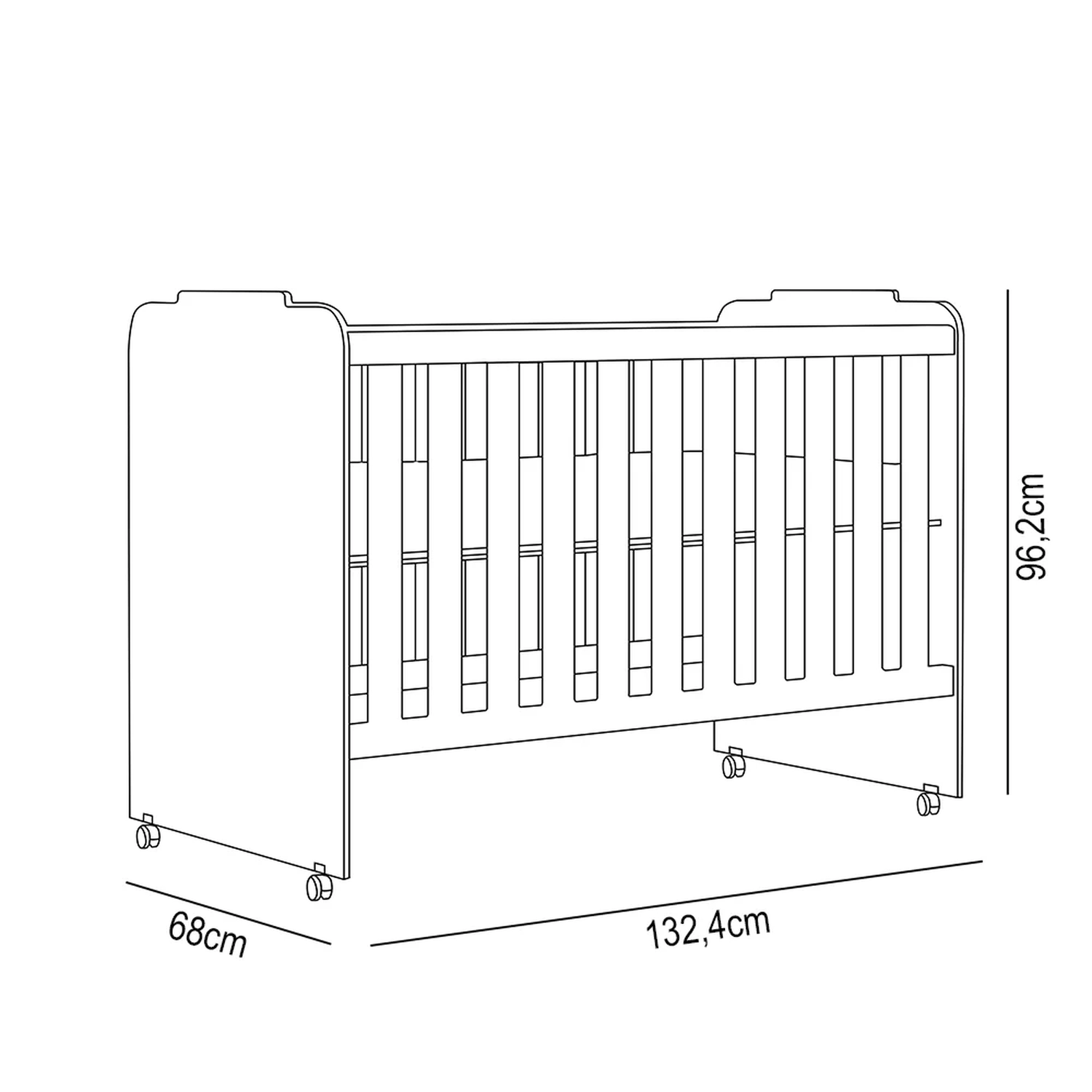O Berço tem a grade fixa com bordas arredondadas que evita acidentes e facilita o acesso ao bebê, feito de MDF de alta qualidade e com pintura UV que garante maior durabilidade e resistência. O berço ainda conta com rodízios em PVC que facilitam a movimentação, e um suporte para mosqueteiro que protege o seu pequeno dos insetos e permite pendurar mobile. Ele suporta um colchão padrão de 60x130cm, confortável e aconchegante para embalar o neném no seu melhor soninho. Além disso, o berço é Certificado Pelo Inmetro, seguindo todos os padrões para garantir segurança e qualidade.