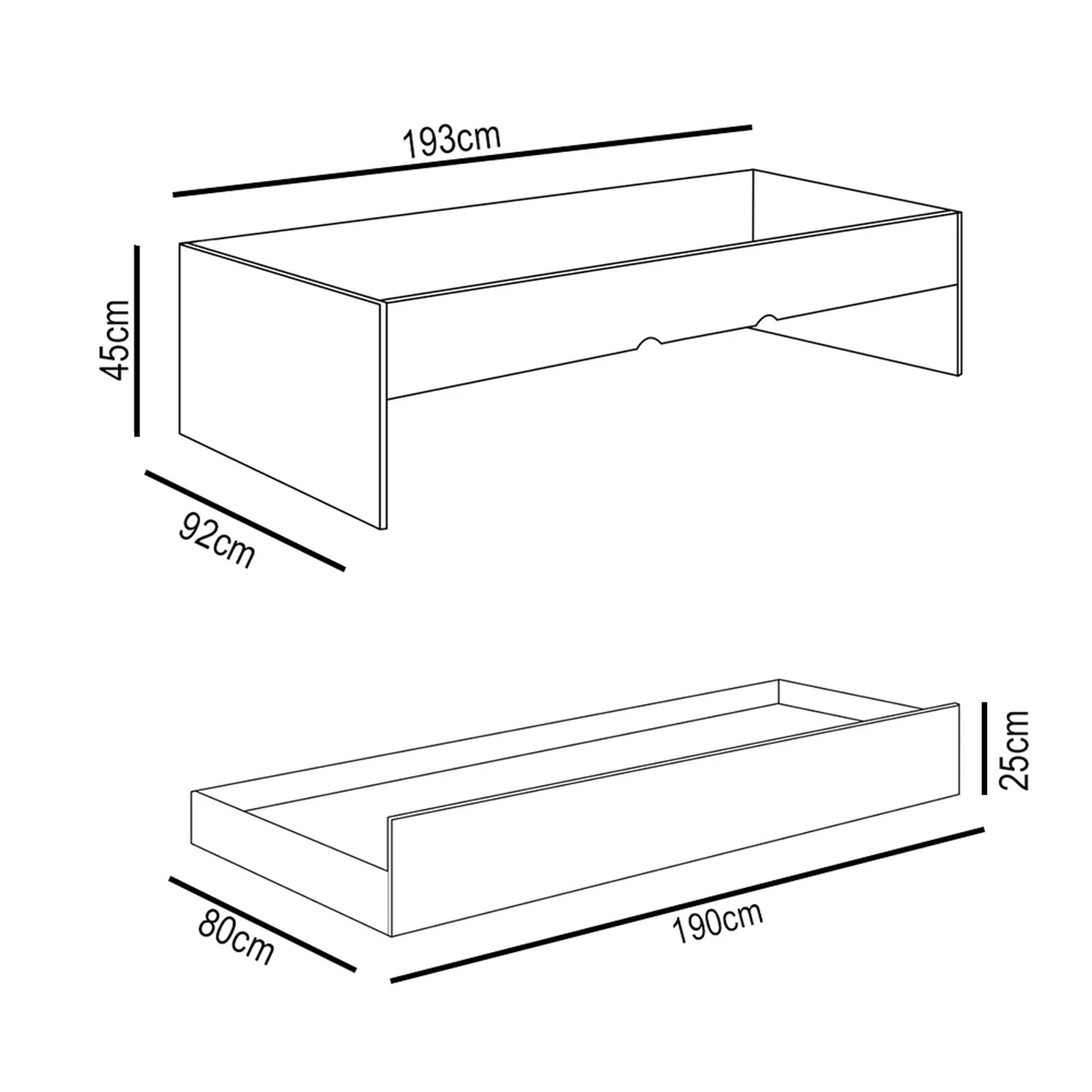 Cama: 193 x 92 x 45 cm.