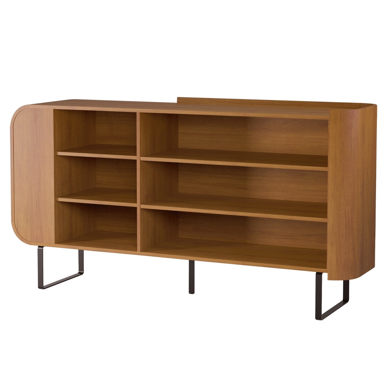 Os cantos curvos orgânicos e o visual de pé industrial em metal preto valorizam a decoração, transformando o móvel em um elegante Móvel que se adapta a diferentes estilos.