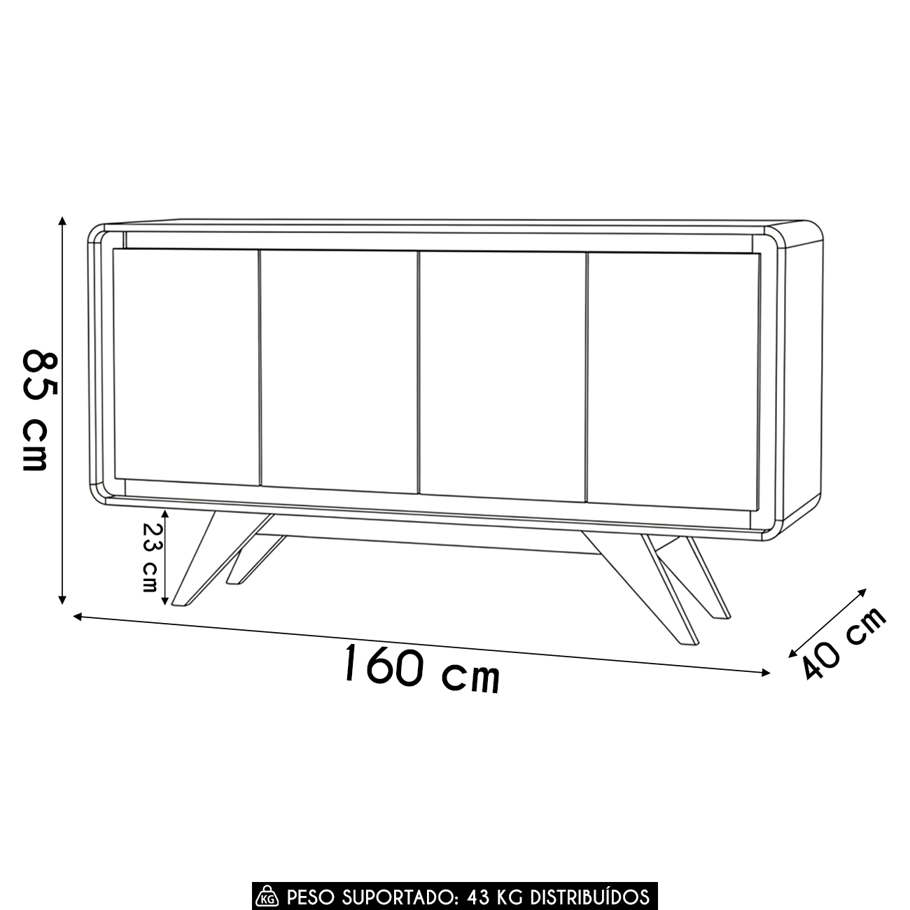 Peso Suportado: 43 kg distribuídos.