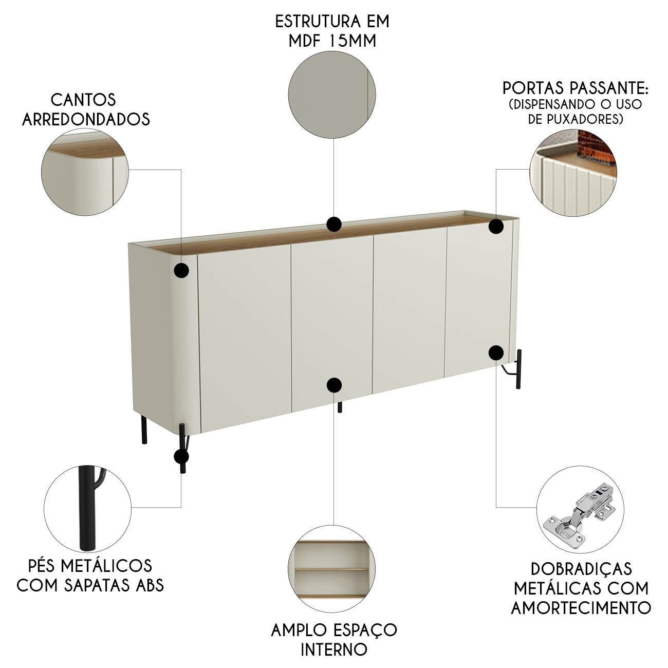 Conteúdo da Embalagem: 1 Aparador Buffet.