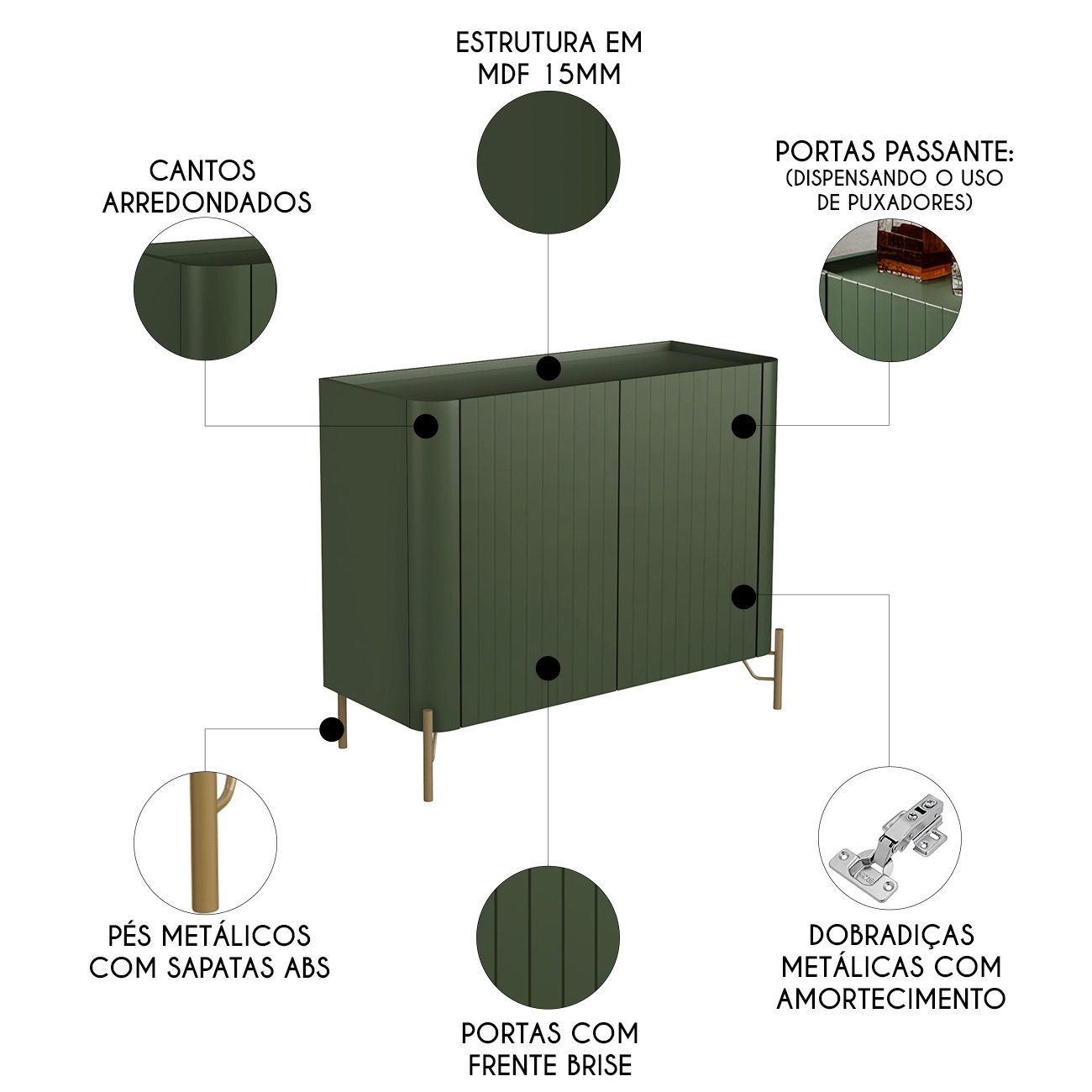 Buffet Aparador 99cm 2 Portas Brise Blen Musgo/Dourado I06 - Mpozenato