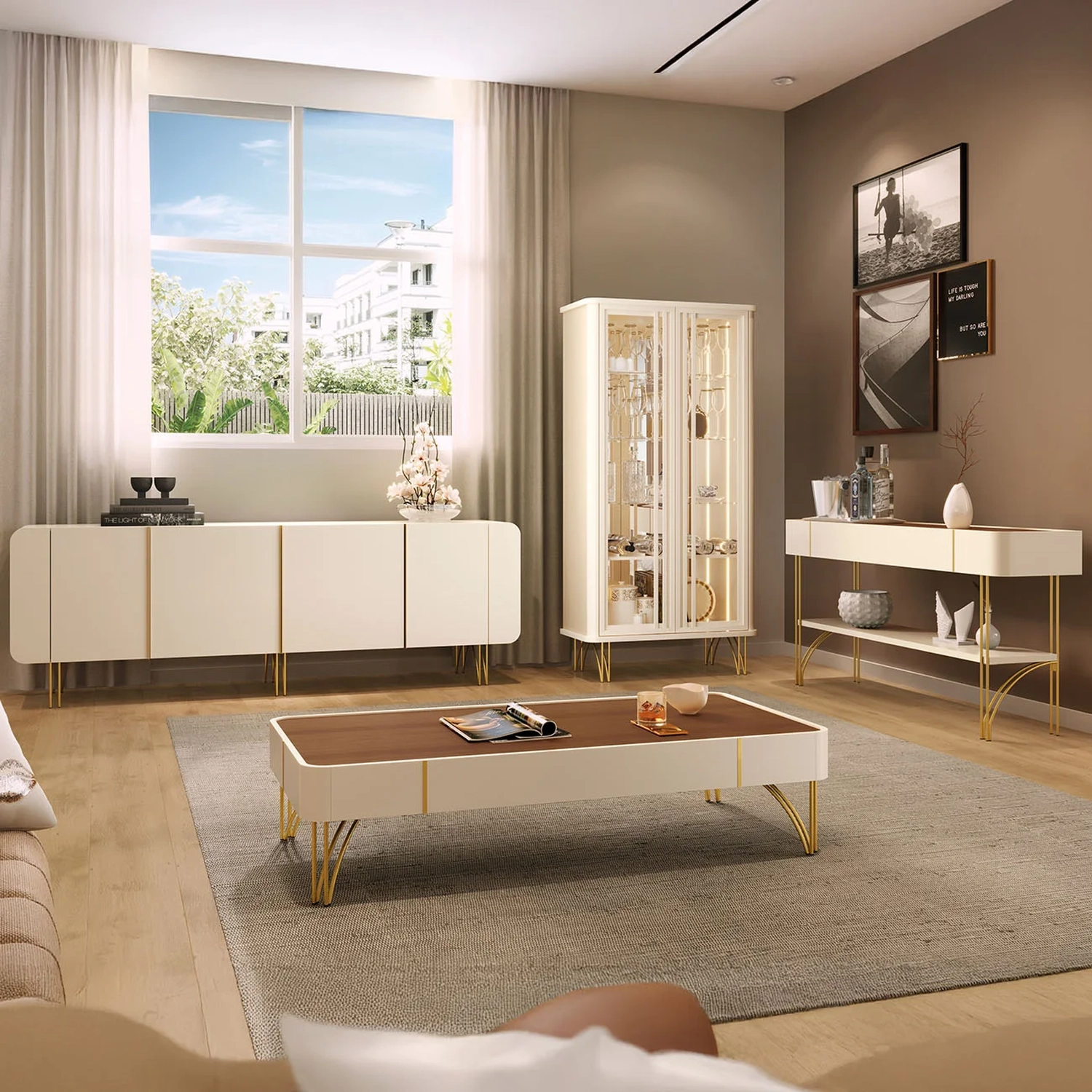 Está procurando um inovar sua casa com peças que combine requinte, sofisticação e funcionalidade? Então você vai adorar o Buffet Aparador Cristaleira e Mesa de Centro Ester Off/Castanho, da HB Móveis!