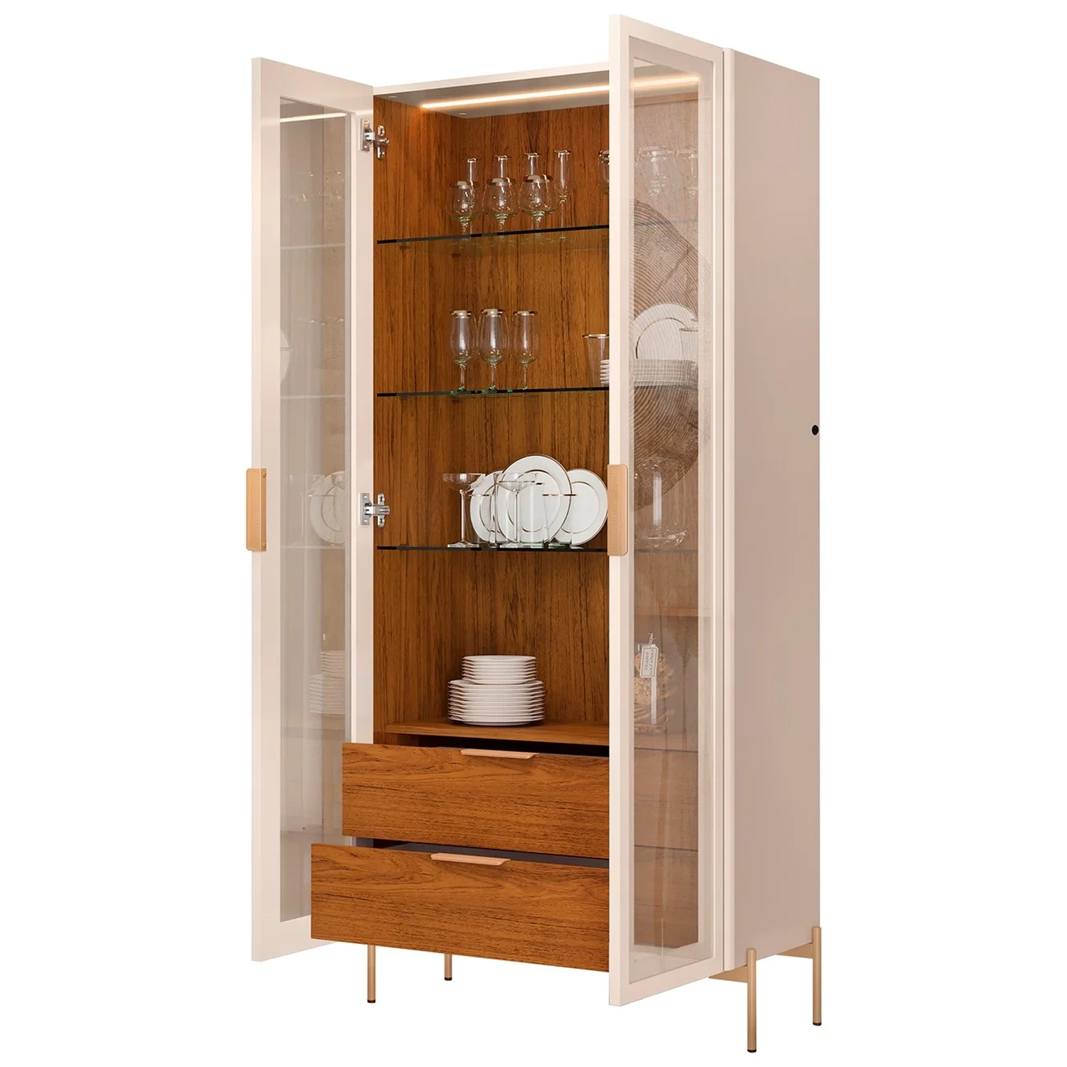 Este Buffet Aparador Lena e Cristaleira Com LED Amelia Freijó/Off, da Mpozenato, são a combinação perfeita para quem busca sofisticação e funcionalidade na decoração de sua Sala de Estar.