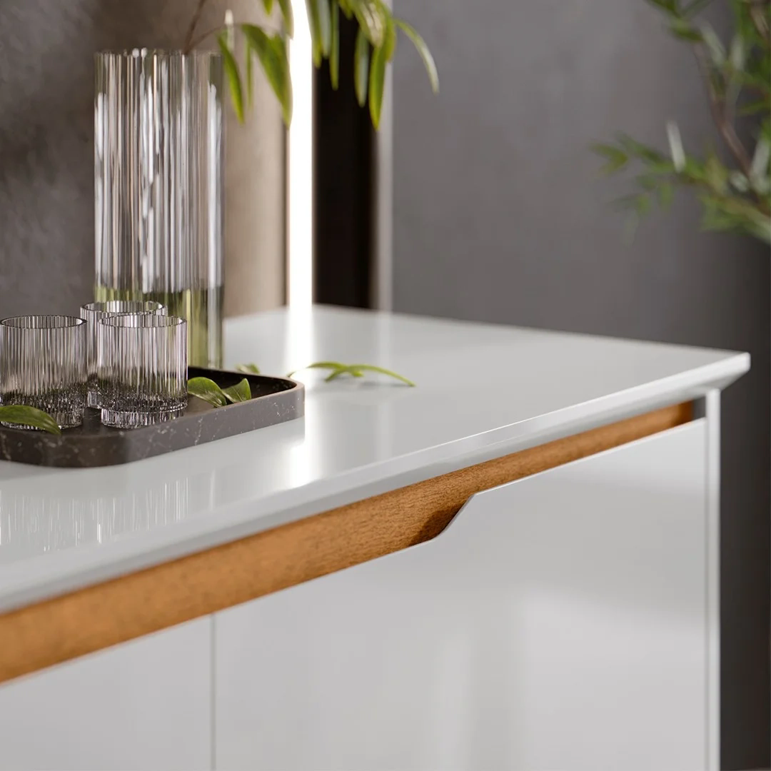 Com linhas limpas e sofisticadas, esse balcão buffet é perfeito para aqueles que buscam adicionar um toque contemporâneo ao seu espaço de jantar, principalmente se prefere um design moderno e minimalista, que se encaixa perfeitamente em qualquer estilo de decoração, enquanto proporciona um visual sofisticado à sala de jantar. Além disso, a funcionalidade se revela nas duas portas e duas gavetas, fornecendo amplo espaço de armazenamento para todos os seus utensílios de mesa posta, jogos de jantar e até mesmo suas preciosas taças e cristais. Ah, já o diferencial está na montagem flex das vistas das portas e gavetas, ou seja, você poderá optar por ter os detalhes na tonalidade freijó. Demais, não é mesmo?!