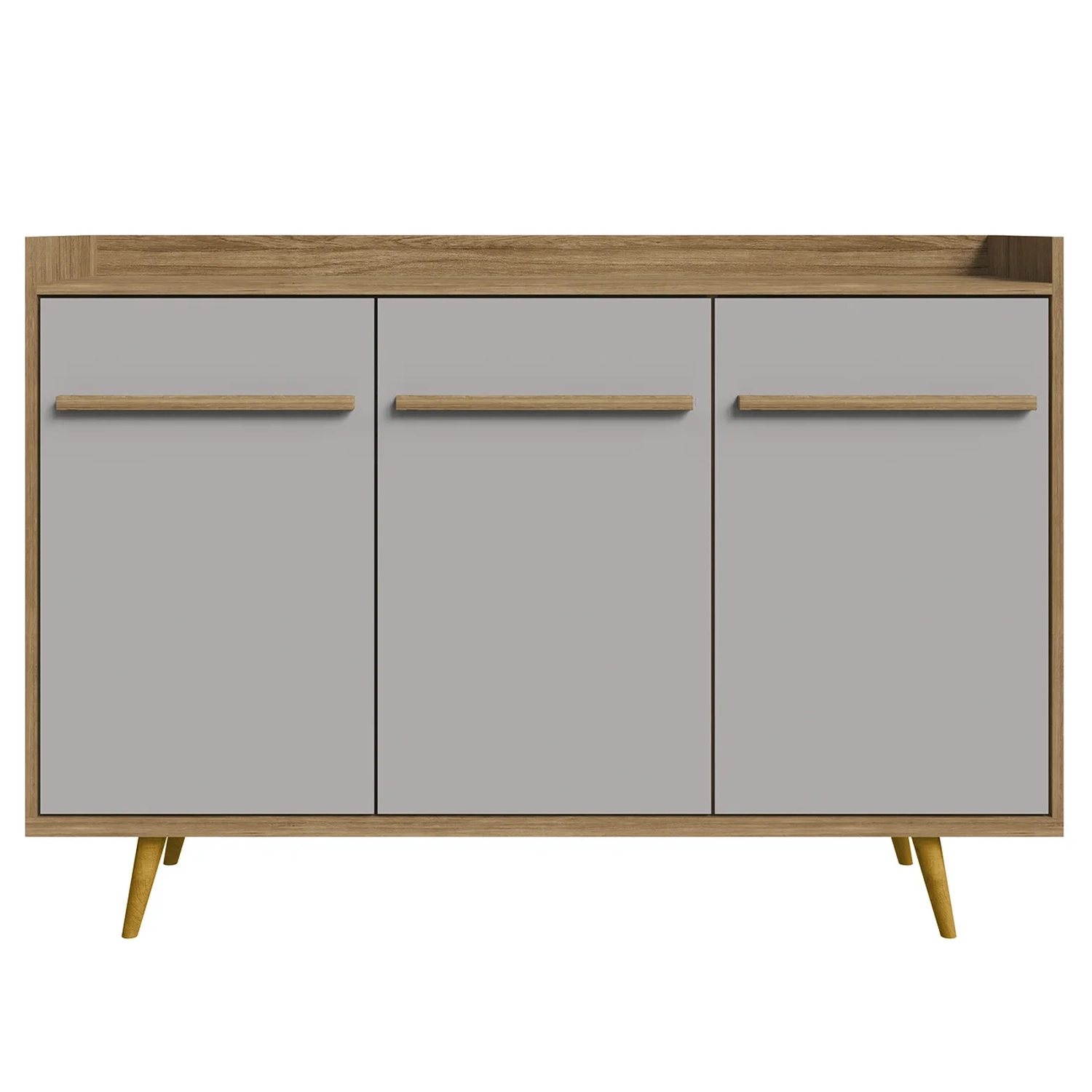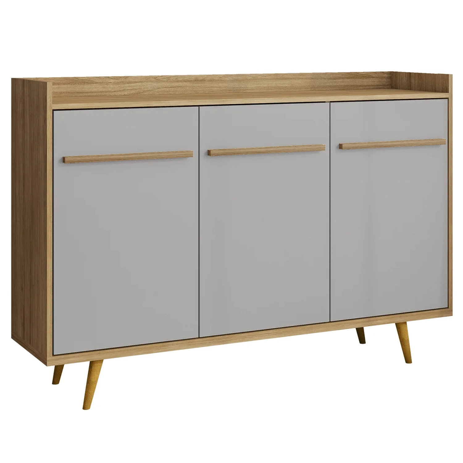 As três portas do Aparador possuem dobradiças metálicas, proporcionando um fechamento suave e silencioso. Os puxadores em MDF revestido completam o visual, adicionando um toque de modernidade e charme.