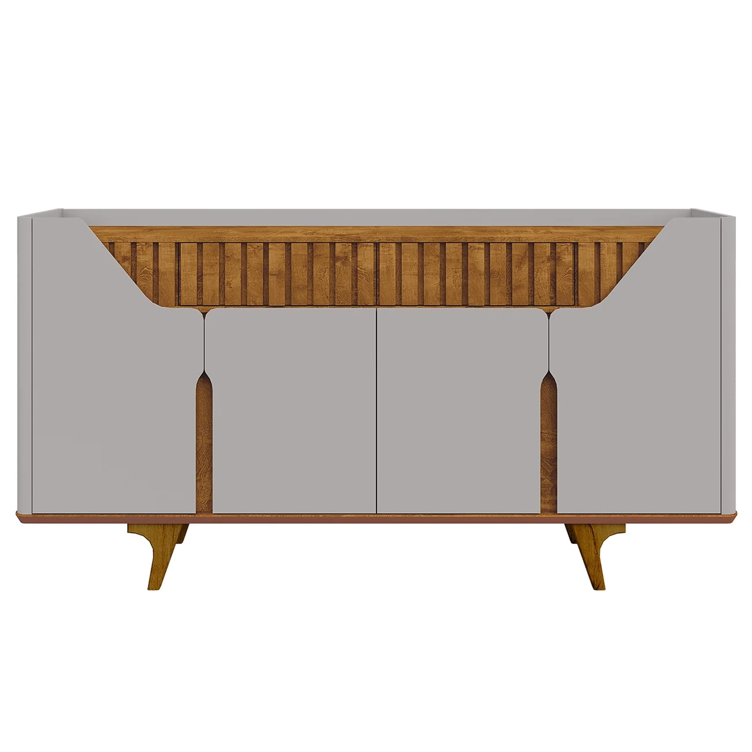 O Aparador possui também duas gavetas com frentes ripadas, que trazem um toque decorativo diferenciado. As corrediças telescópicas garantem um deslizamento leve e durável.