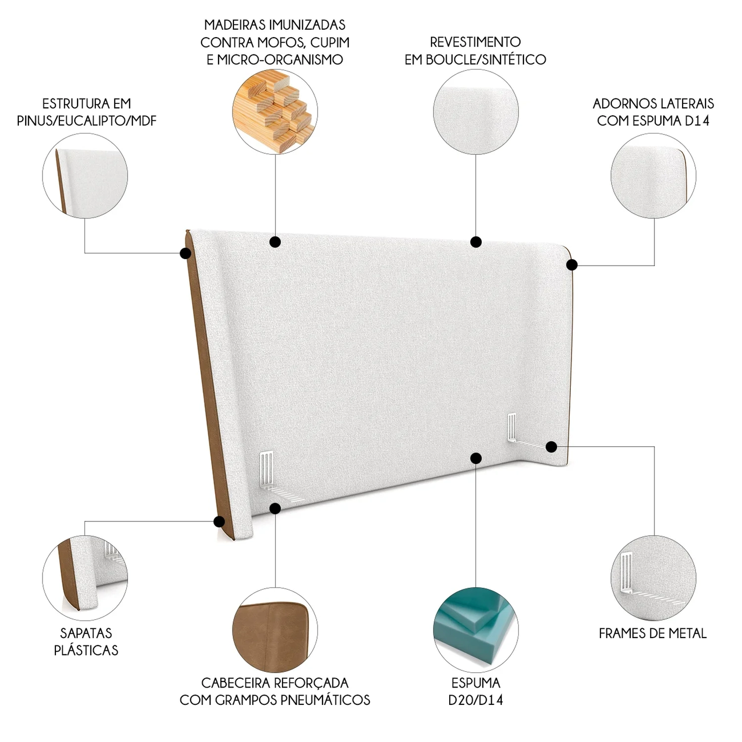 - Espuma D-20 na estrutura e D-14 nos adornos laterais.