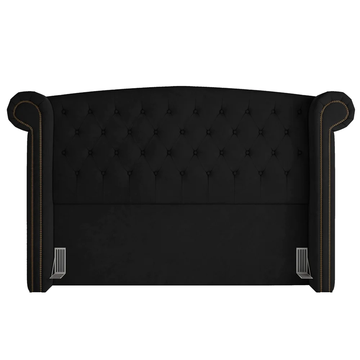 Cabeceira Cama Box Casal 140cm Provença com Calçadeira Vêneto Z37 Veludo Preto - Mpozenato 660044990