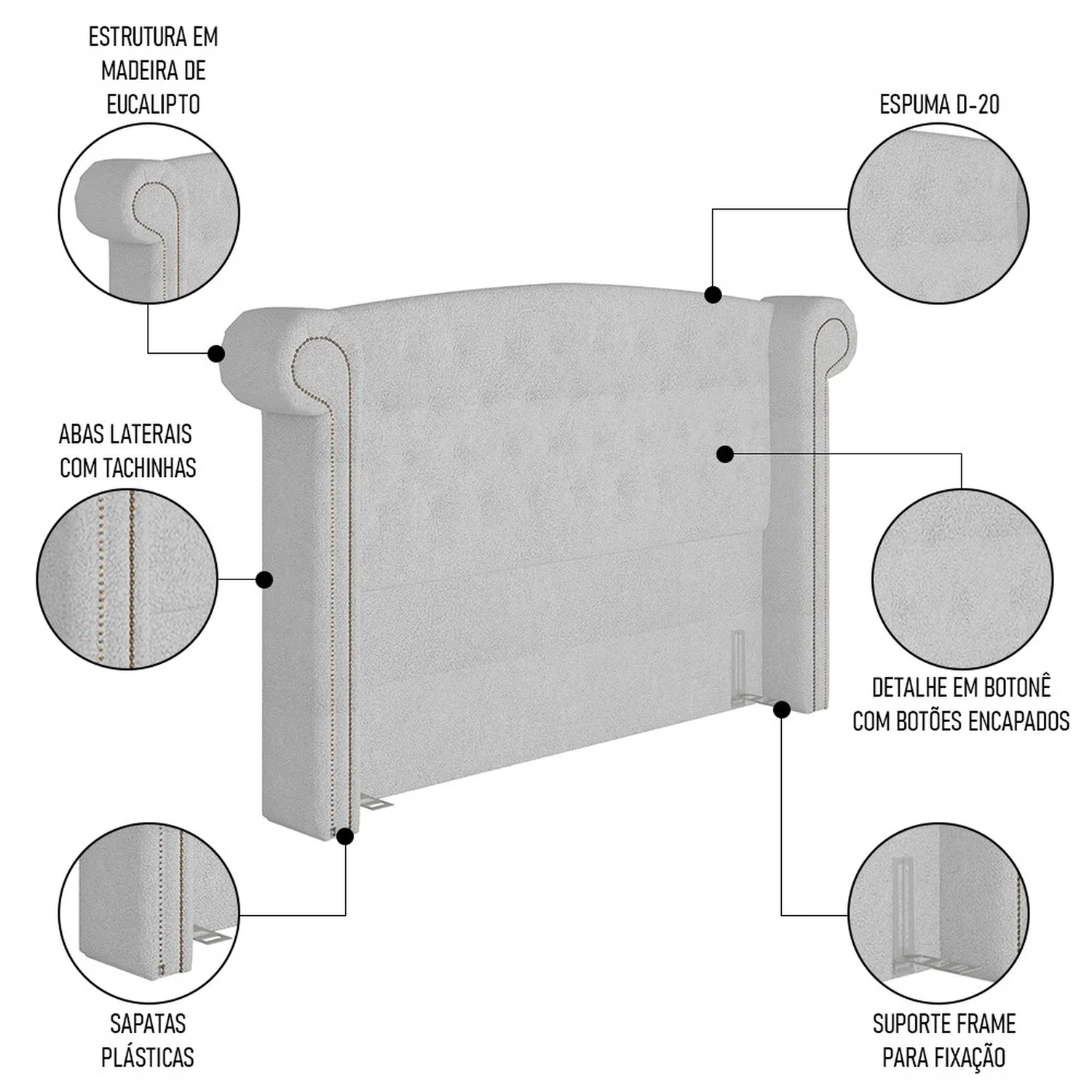 Cabeceira Provença: 140 x 138 x 26 cm.