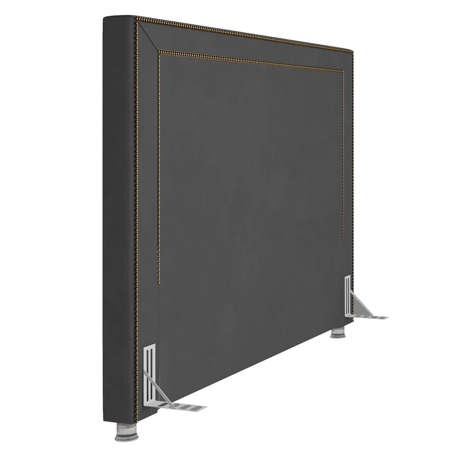 Com um design minimalista, essa cabeceira clean vai ganhar o seu coração e também o seu quarto, pois as linhas retas combinadas ao contorno em tachinhas criam um ar contemporâneo e agradável. Além disso, não podemos esquecer de falar sobre a qualidade, pois é uma cabeceira casal estofada com espuma D20, estrutura em madeira de eucalipto e revestida com tecido veludo, suave ao toque. Já os pés metalizados deixam esse produto ainda mais elegante.
