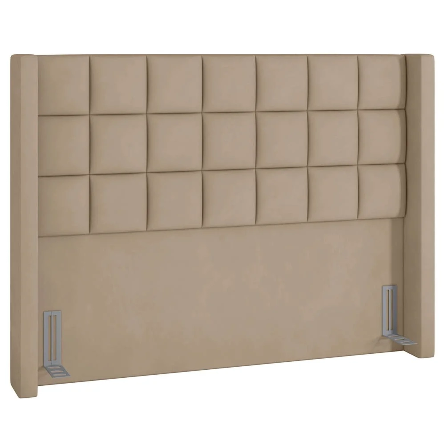 Te apresentamos a Cabeceira Casal King Pisa com seu design moderno que remete a Cabeceira Painel com sua costura, no centro, evidenciando as formas geométricas. Só que, ainda conta com um diferencial que são as laterais estofadas revestidas por tecido Veludo Bege que além do requinte, toque suave e macio, ainda confere resistência e durabilidade ao produto.