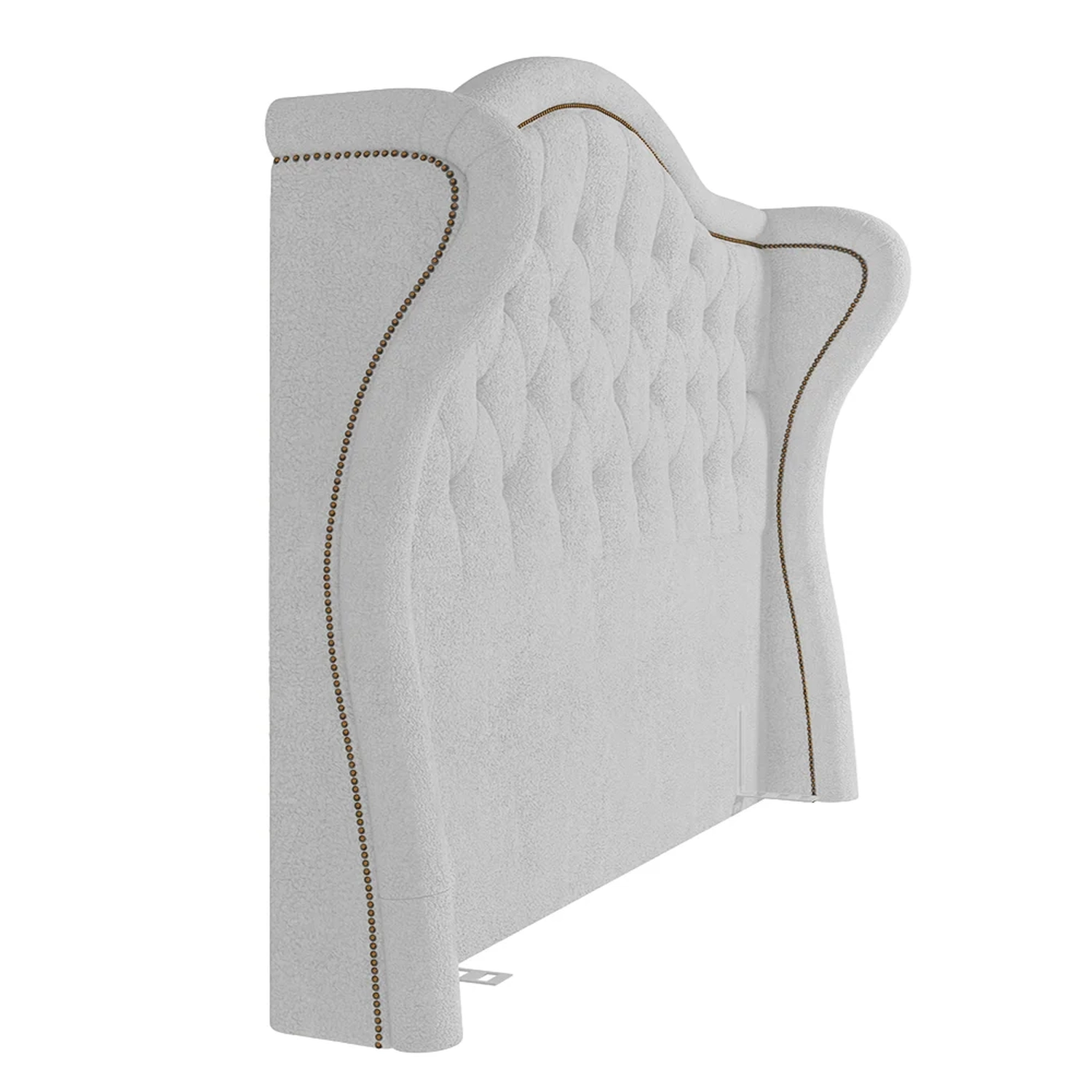 Esta Cabeceira de Casal produzida no tecido Boucle, que é um tipo de tecido caracterizado por laços e ondulações que criam um efeito de volume, muito macio e duradouro, que esbanja conforto e segurança, ou seja, além de ser um tecido leve e lindo, ainda ajuda no seu bem-estar. A estrutura é em madeira de eucalipto e forro em Kami TNT que garantem qualidade e resistência. Possui Design Moderno, detalhes em Capitonê, um par de frames que auxiliam na instalação da cama e tachinhas que acompanham desde a borda do formato desta Cabeceira Estofada , agregando elegância ao produto.