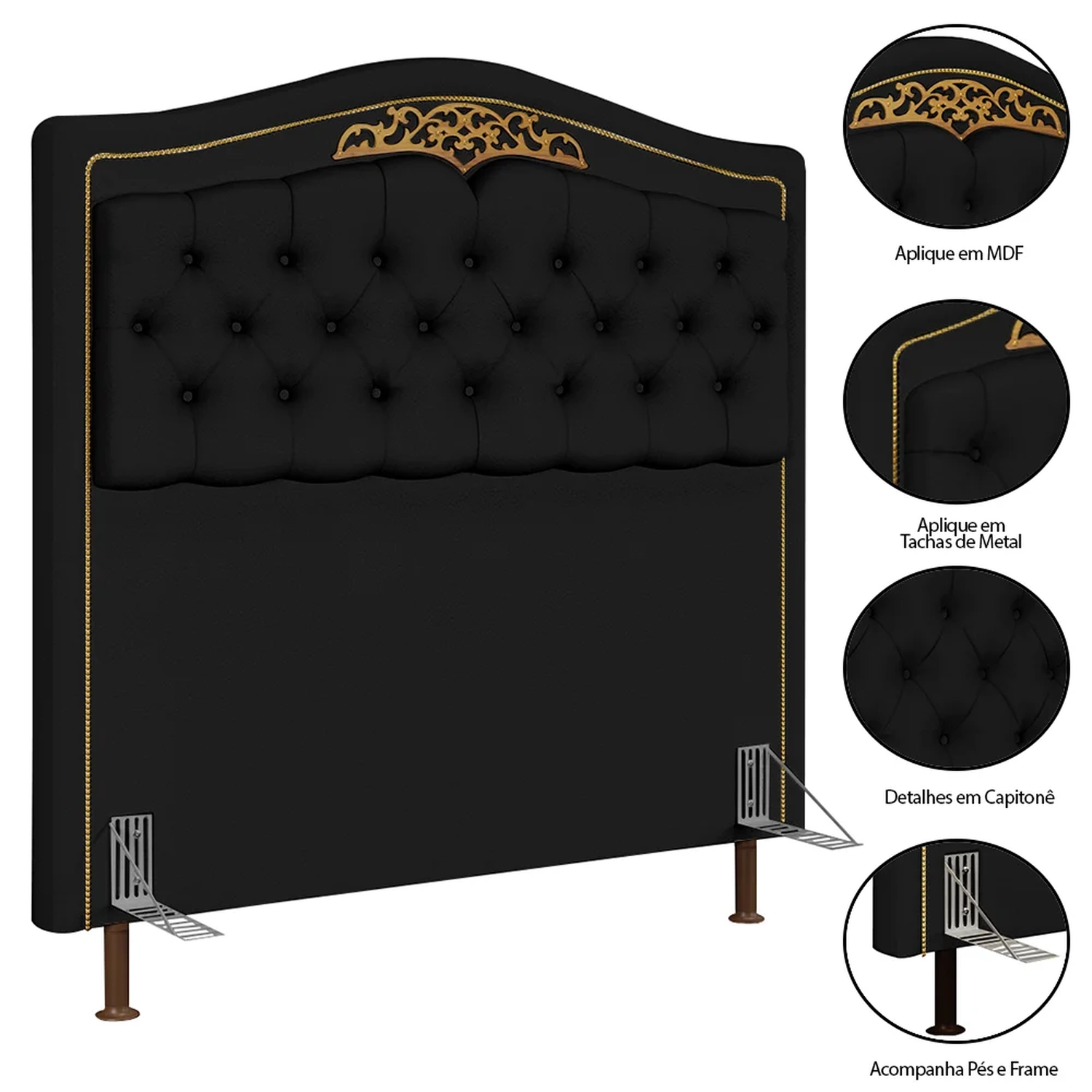 Sistema de Montagem: O produto é enviado montado, sendo necessário apenas a fixação dos pés e parafusar a cabeceira na cama box.