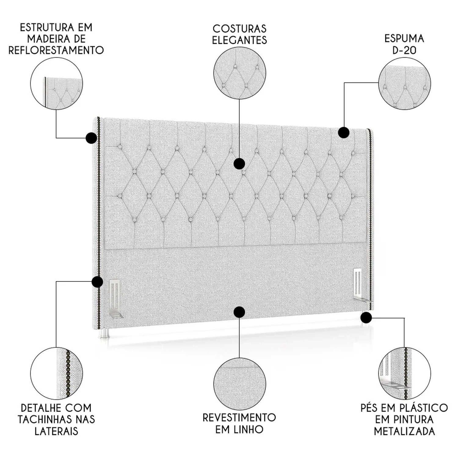 Adicione um toque de estilo e aconchego ao seu quarto com a Cabeceira Cama Box Casal Queen 160 cm Florenza Z37 Linho Cinza Claro.