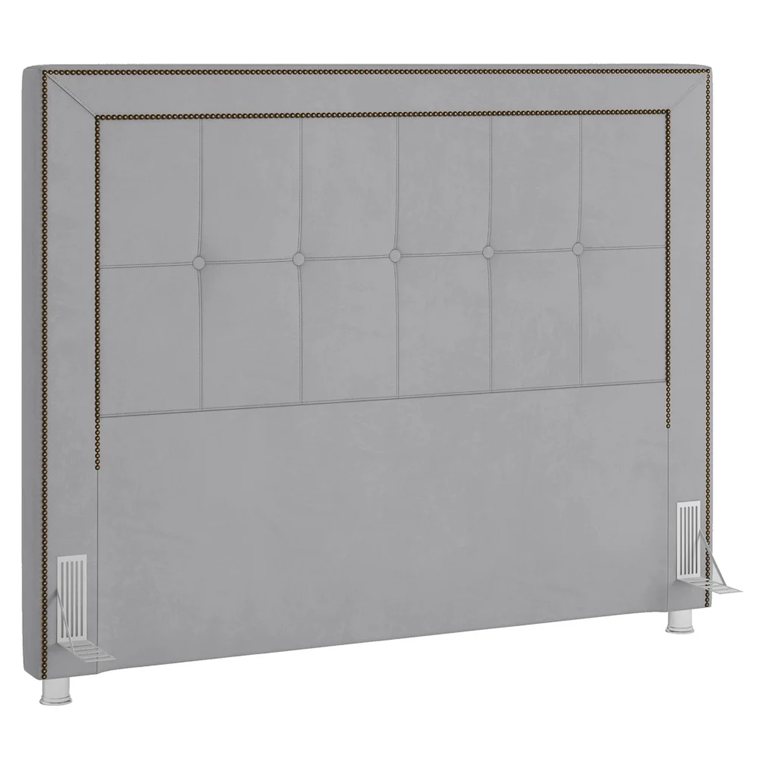 Características do Produto Material da estrutura: Madeira de Eucalipto. Material e Densidade da Espuma: Espuma D20. Revestimento: Veludo. Possui Pés: Sim. Tipo de Pés: Acrílico Metalizado. Altura dos Pés: 6 cm. Possui Frame: Sim. É adequado para cama box: Sim Tamanhos de cama: Casal Queen. Acompanha Mesa de Cabeceira: Não. Diferenciais: - Design moderno. - Botonê revestido. - Contorno com tachinhas. Sistema de Montagem: O produto é enviado montado, sendo necessário apenas a fixação do frame. Manual de Montagem: Não. Complexidade da Montagem: Baixa. Conteúdo da Embalagem: 1 Cabeceira. Volumes: 1 Volume. Garantia do Fabricante: 90 dias contra defeitos de fabricação. Montagem: Recomendamos que seja feita por um profissional. Recomendação de limpeza: Utilize pano levemente úmido.