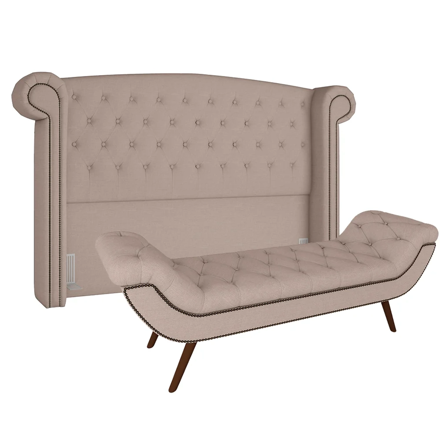 Cabeceira Cama Box Casal Queen 160cm Provença com Calçadeira Vêneto Z37 Linho Bege Cru - Mpozenato 660045005