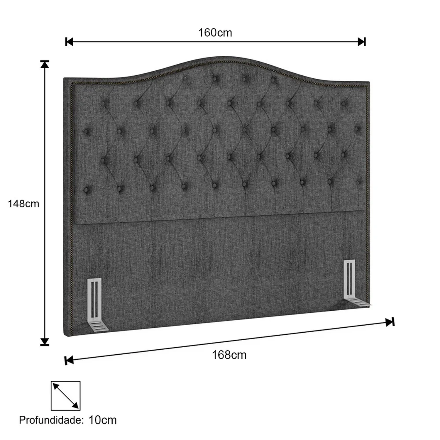 Um diferencial incrível dessa Cabeceira é seu design clássico, com costura botonê finalizada com botões Capitonê. Também possui tachinhas que acompanham toda a borda do produto, oferecendo um acabamento bonito e sofisticado.