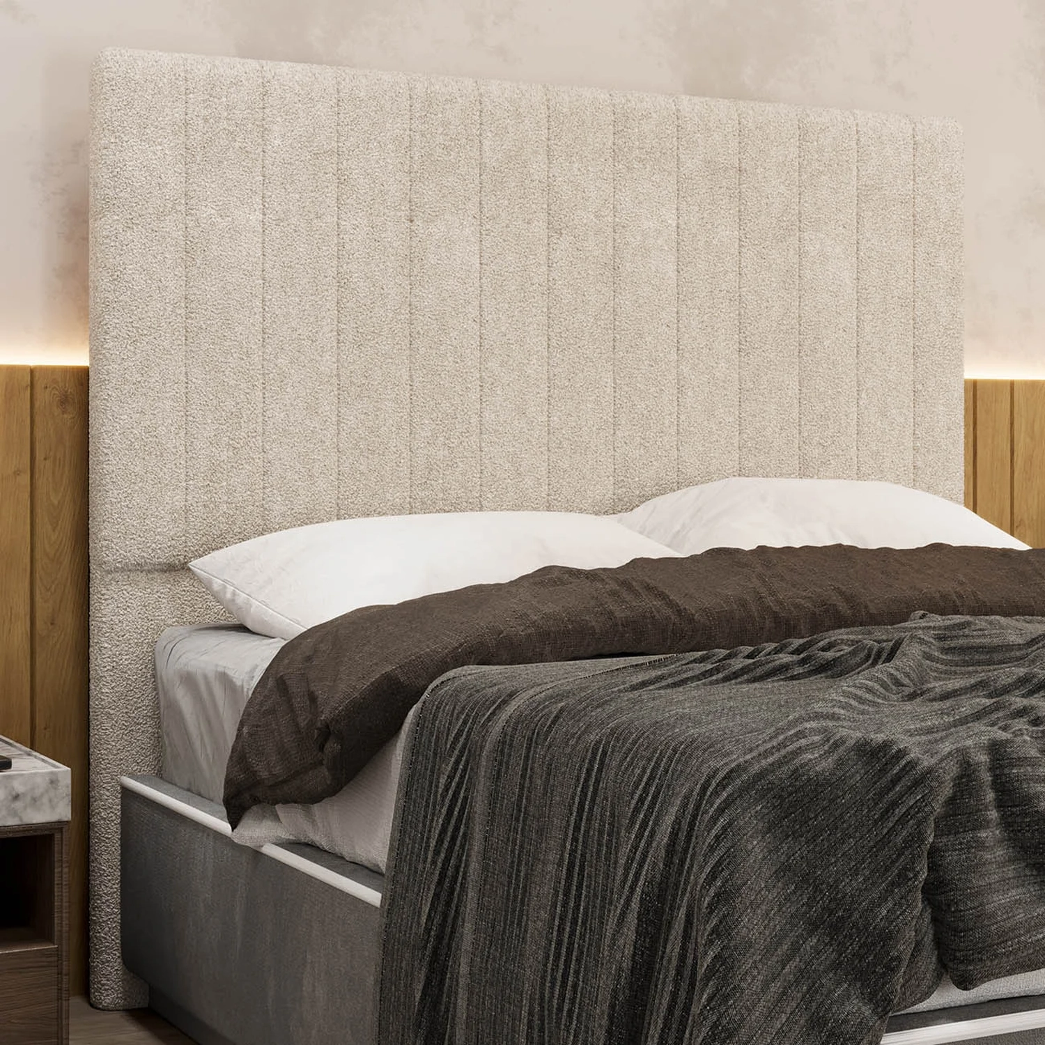 Cabeceira Cama Box Queen 160cm Estofada Plutus Boucle Bege Z04 - Mpozenato