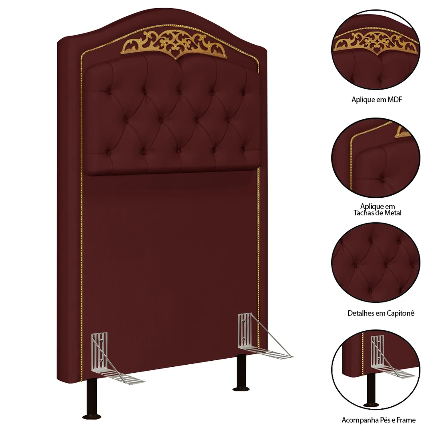 A Cabeceira Cama Box Solteiro 90cm com Tachas Imperial J02 Veludo Bordô, da Mpozenato, é uma ótima opção para quem busca conforto e elegância no quarto!