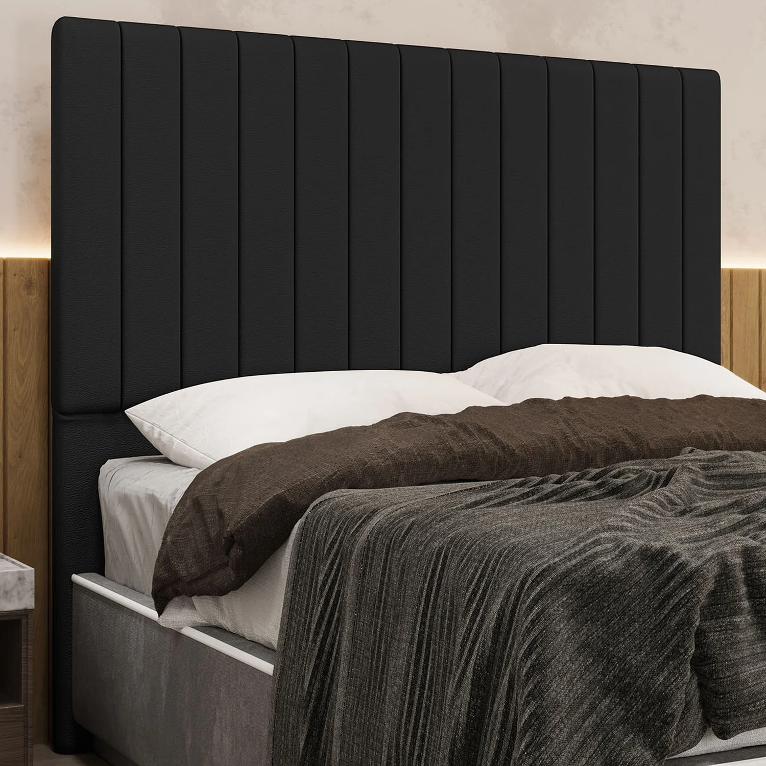 Cabeceira Cama Box Solteiro 90cm Estofada Plutus Sintético Preto Z04 - Mpozenato