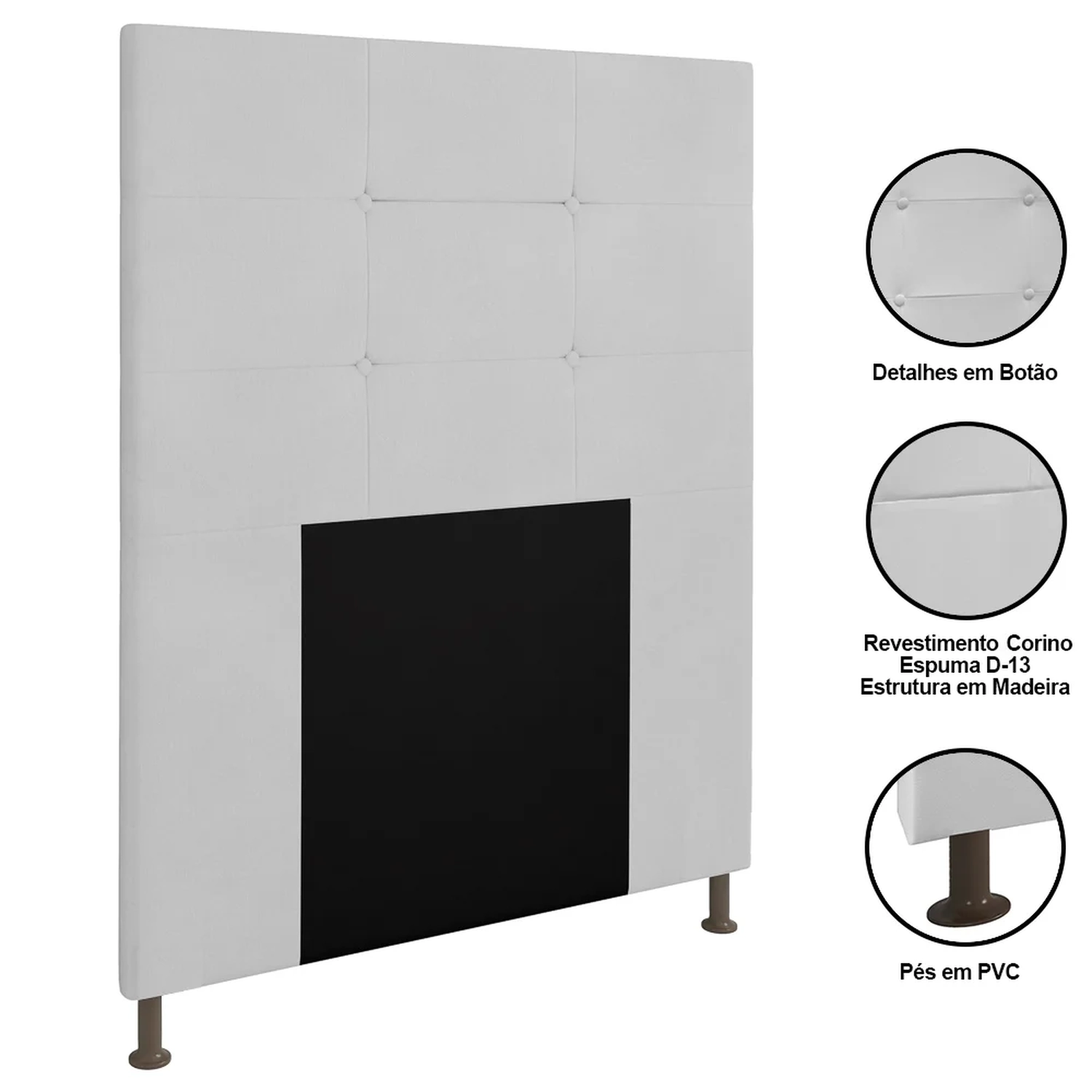 A Cabeceira Estofada é mais que um acessório, além de ser uma peça decorativa, você pode encostar confortavelmente para ler um livro ou assistir a tv. Fabricada em Madeira Eucalipto de reflorestamento, a parte estofada é preenchida com espuma de alta qualidade e revestida em tecido Sintético, durável, resistente, macio e agradável ao toque. Ah! O design botonê com botões revestidos é o destaque desse produto, pois deixa a peça mais moderna, sem contar que está sempre em alta. Outro detalhe é a borda levemente curva que confere um acabamento mais suave.