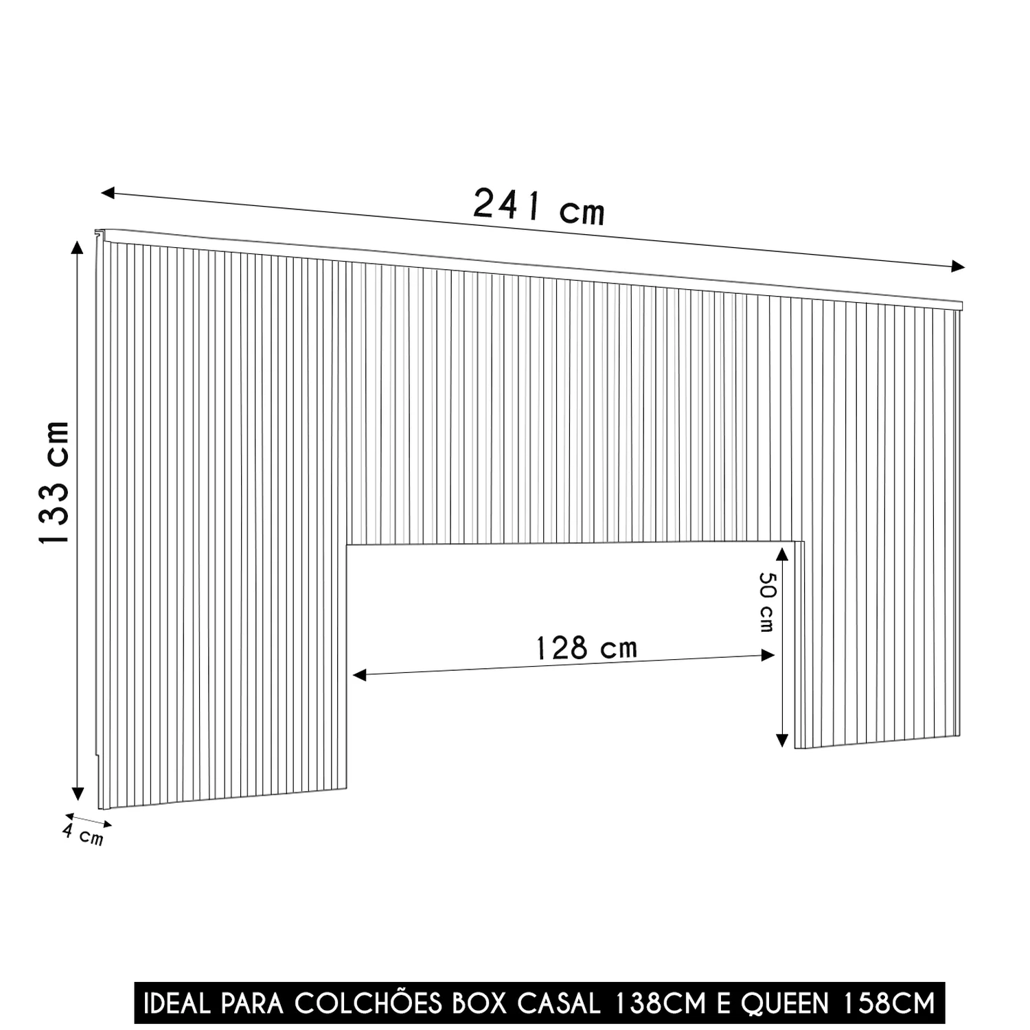 Feita em madeira de alta qualidade, essa cabeceira é compatível com Cama de Casal 138 cm e queen 158 cm, oferecendo 241 cm de largura total, o que proporciona flexibilidade e versatilidade para diferentes tamanhos de colchão. Seu acabamento nature e o padrão ripado agregam um visual contemporâneo e elegante, tornando-a um elemento central de destaque no seu quarto.