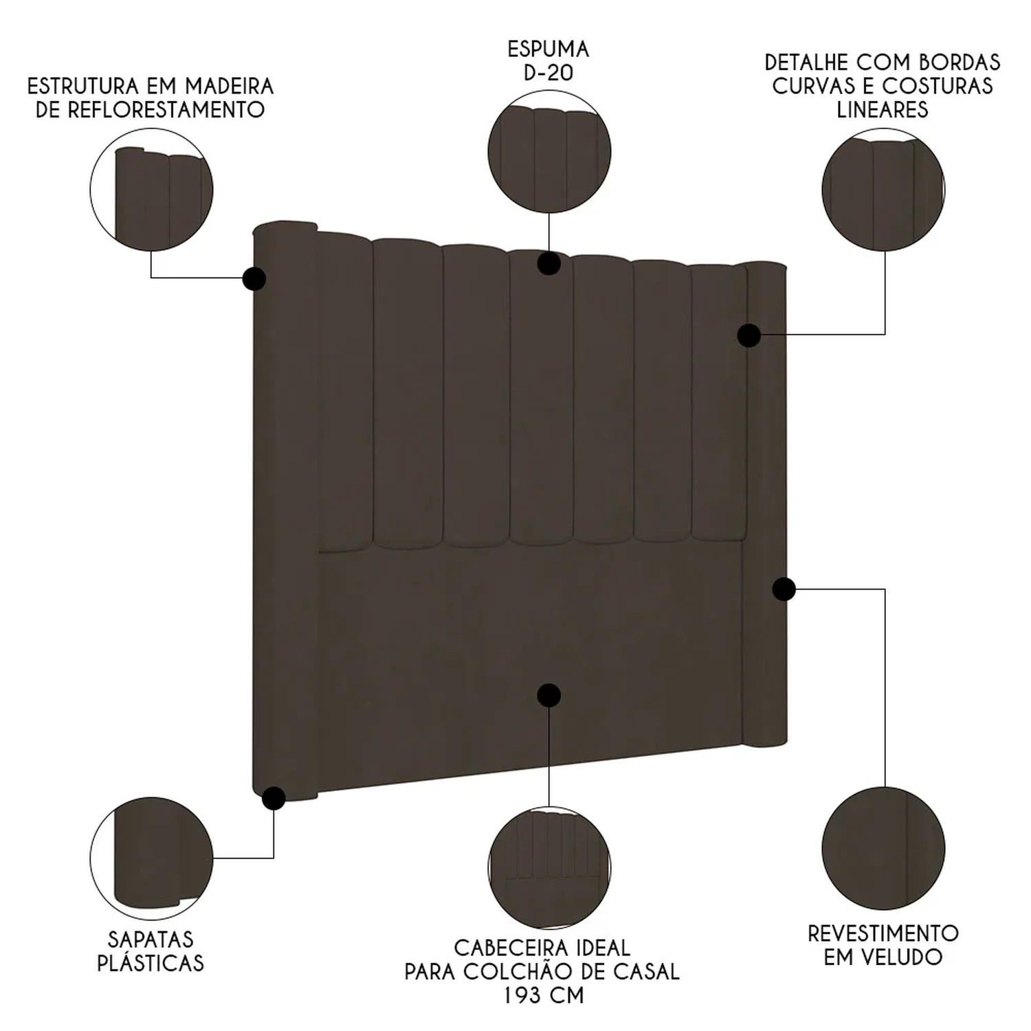 Elemento fundamental para compor a decoração do quarto de casal e, ainda, desempenhar funcionalidade que vai além do estético, a Cabeceira Casal King Cama Box 195cm Claire Z04 Veludo Marrom, da Mpozenato, vai te surpreender do começo ao fim.