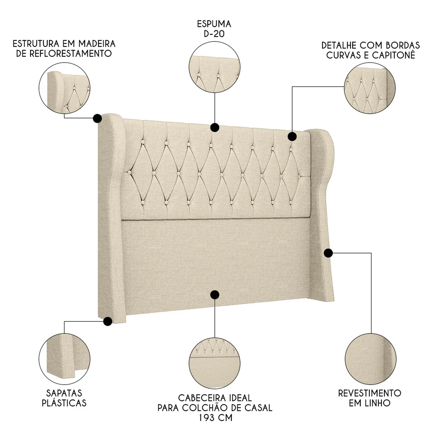 Dona de um design exuberante, digno de páginas de decoração, a Cabeceira Casal King Cama Box 160cm Malva Z04 Linho Bege, da Mpozenato, será o ponto alto do seu quarto de casal.