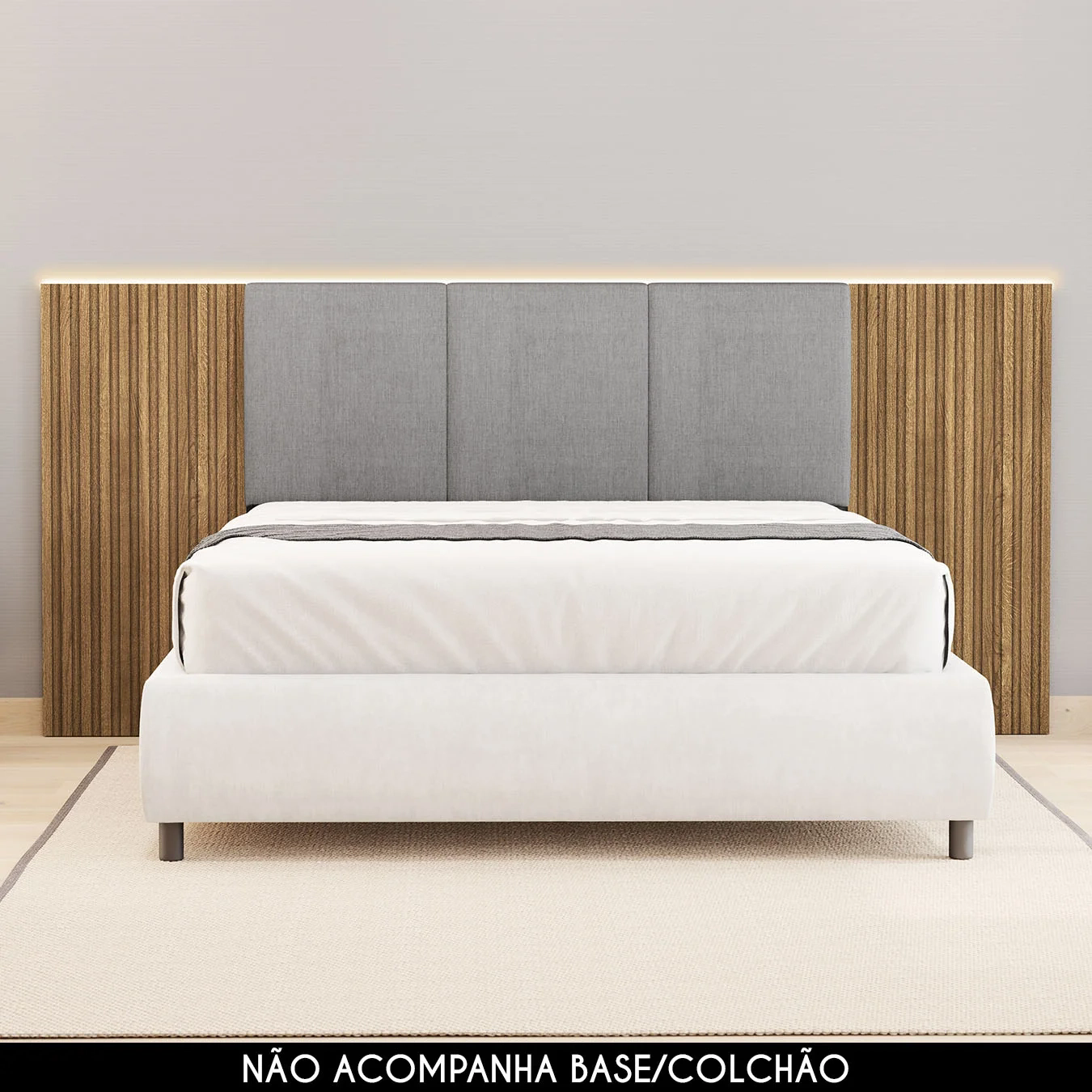 Cabeceira Casal Queen 268cm Com LED Cleo Linho Cinza V02 - Mpozenato