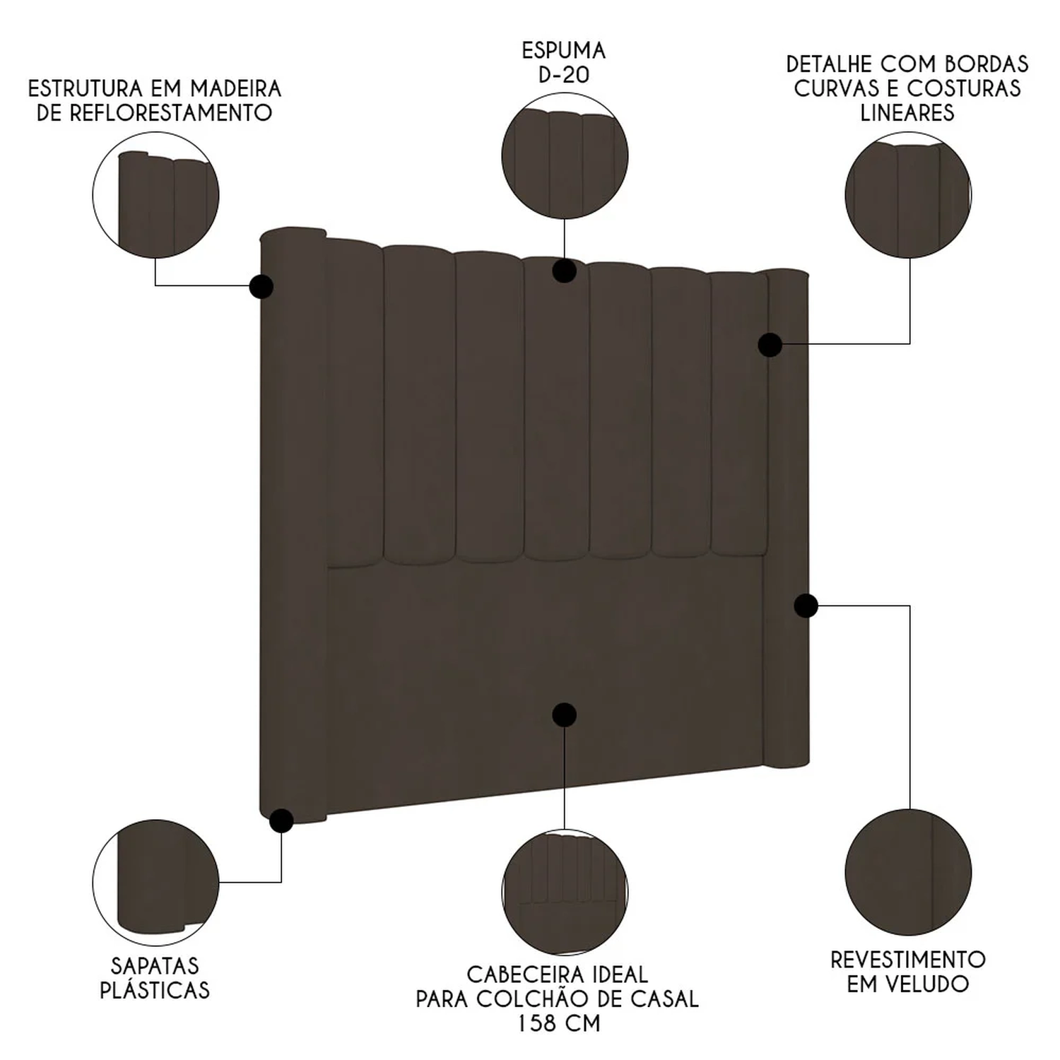 Elemento fundamental para compor a decoração do quarto de casal e, ainda, desempenhar funcionalidade que vai além do estético, a Cabeceira Casal Queen Cama Box 160cm Claire Z04 Veludo Marrom, da Mpozenato, vai te surpreender do começo ao fim.