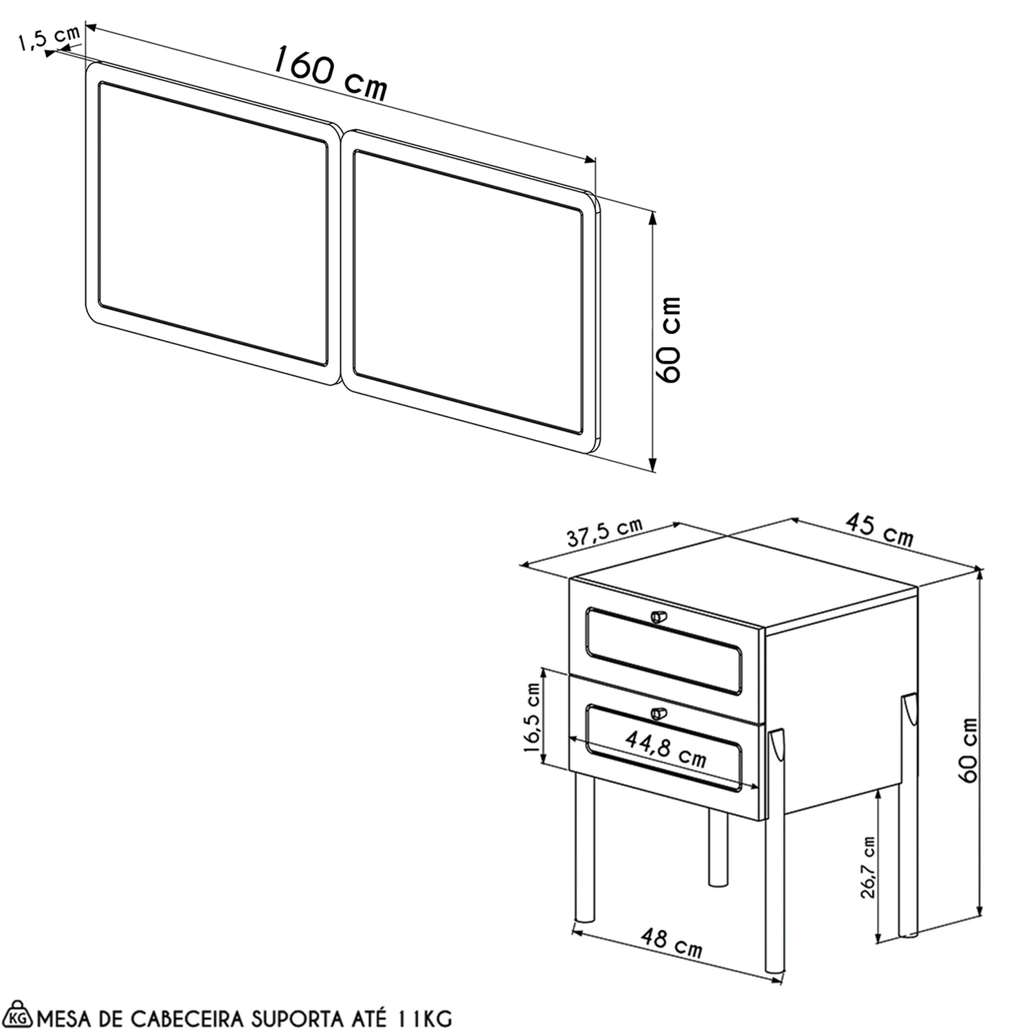 Conteúdo da Embalagem: 1 Cabeceira/ 2 Mesas de Cabeceiras.