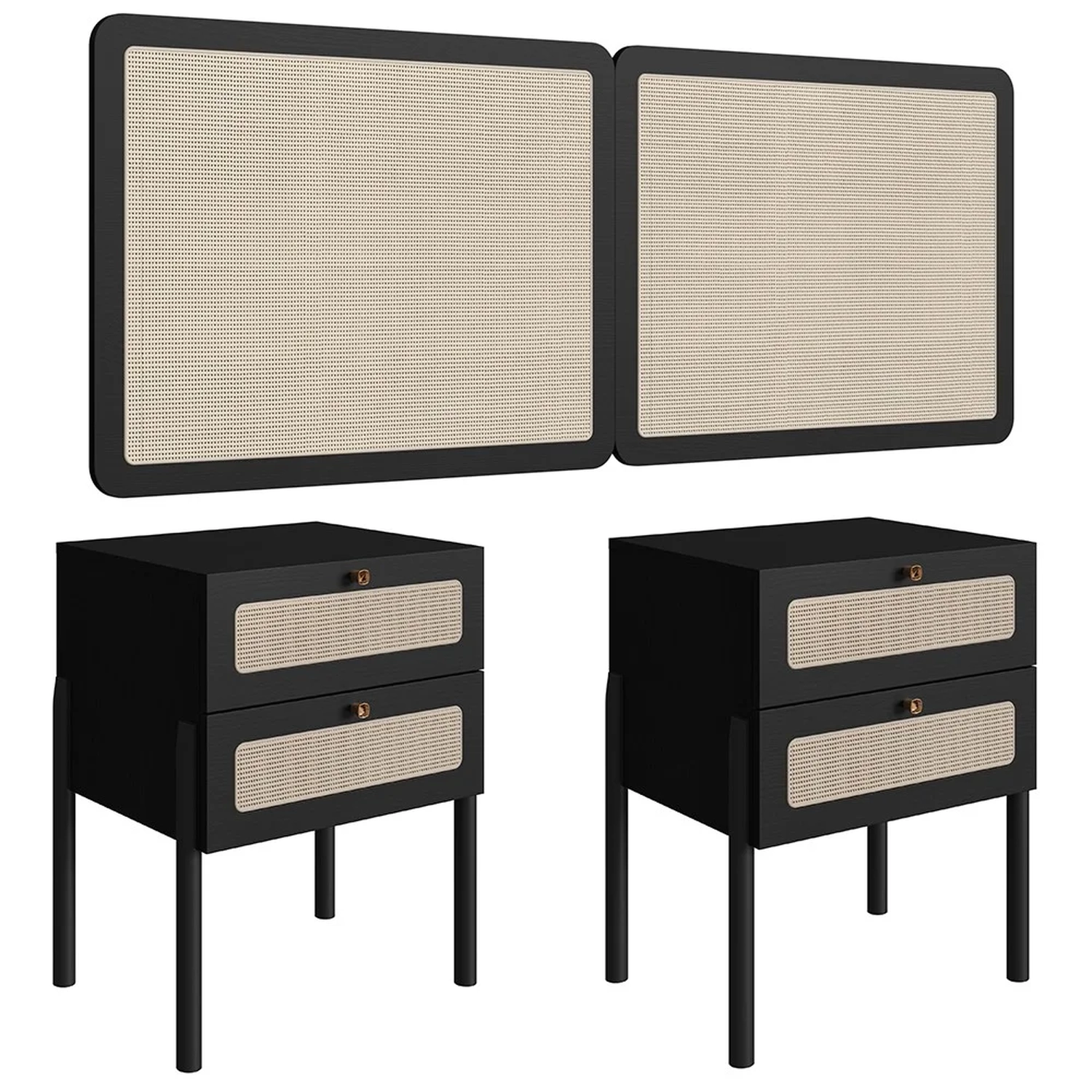 A Cabeceira Casal Queen e 2 Mesas Pés Madeira Arlo A10 Nero/Preto, da Mpozenato, destaca-se por sua combinação de conforto e estilo, ideal para complementar o ambiente de descanso.
