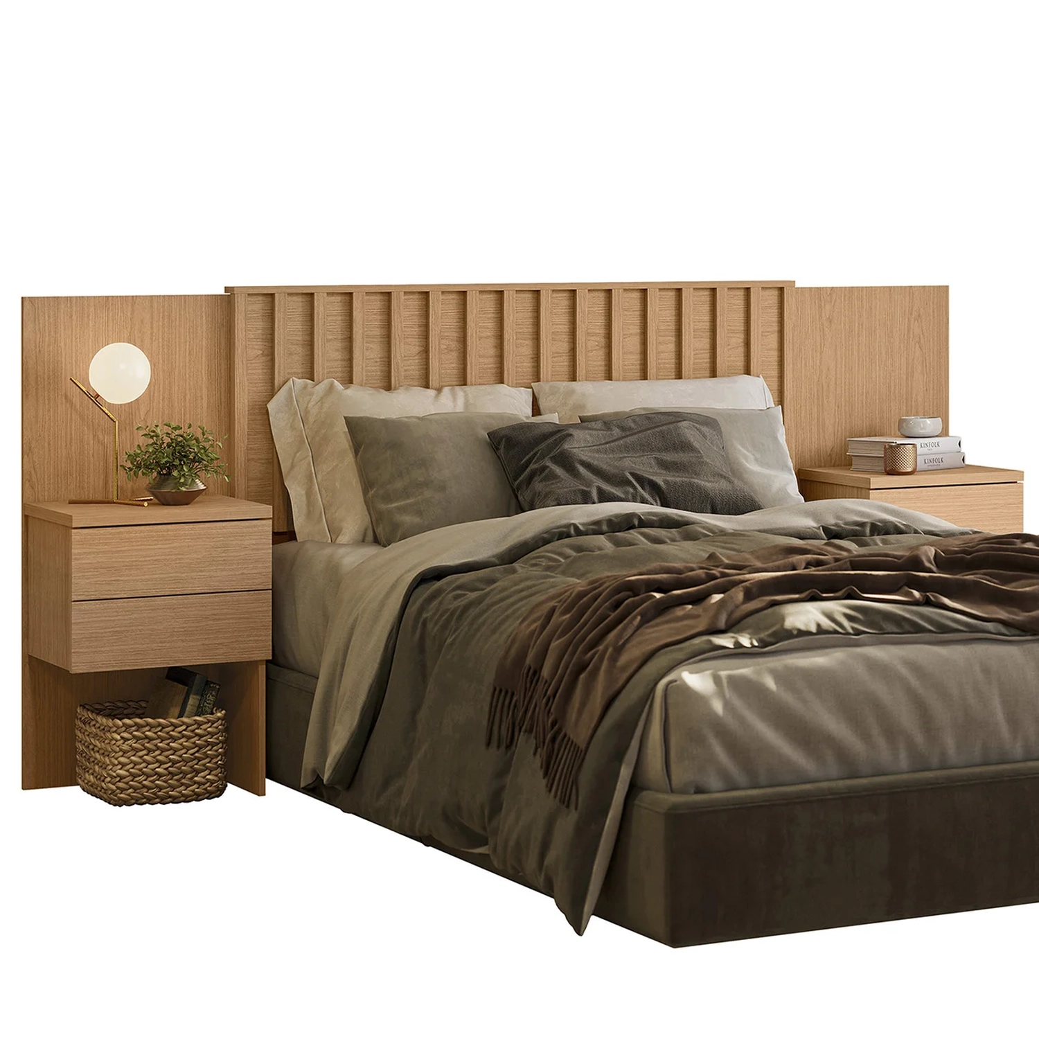 A Cabeceira Casal Queen e King 2 Mesas Laterais Olinda Freijó, Albatroz foi projetada para atender diferentes tamanhos de colchões, pois sua principal característica é ser extensível.