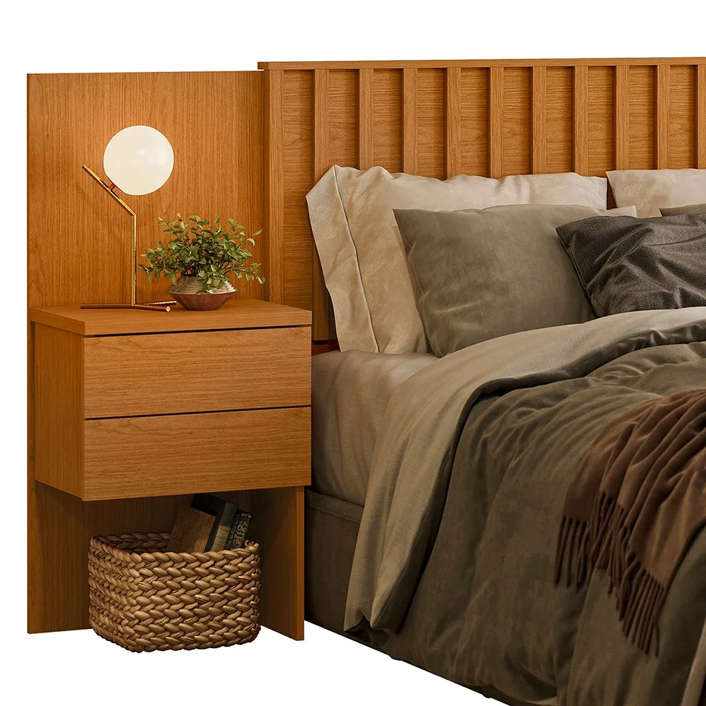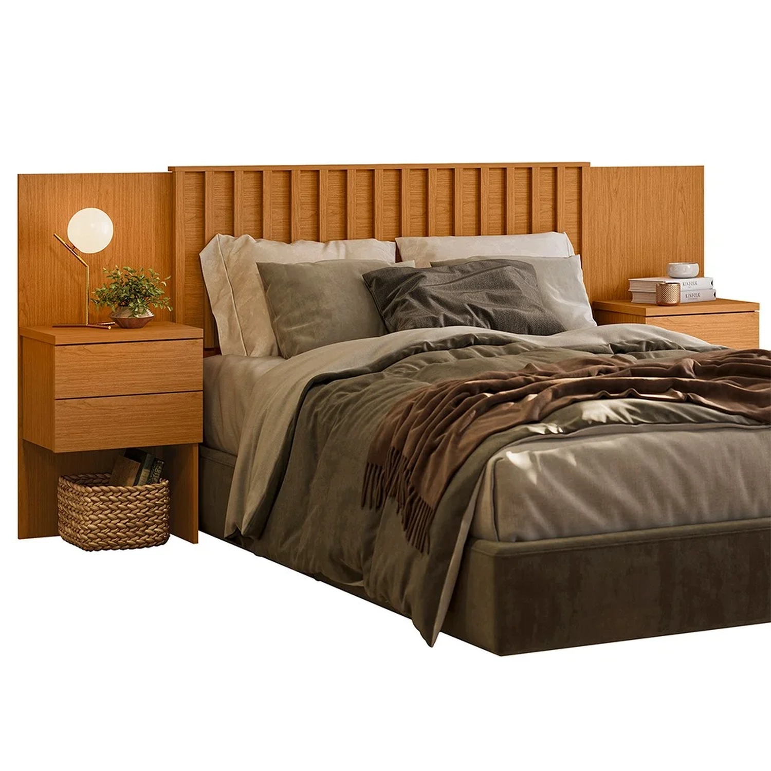 Melhor que uma cabeceira comum é uma cabeceira extensível, não é mesmo? Afinal, você poderá combiná-la com camas box de diversos tamanhos, de acordo com a sua necessidade. Por isso, a Cabeceira Casal Queen e King com 2 Mesas Laterais Olinda Cinamomo – Albatroz é a peça certa para você que busca versatilidade e beleza em um único produto.