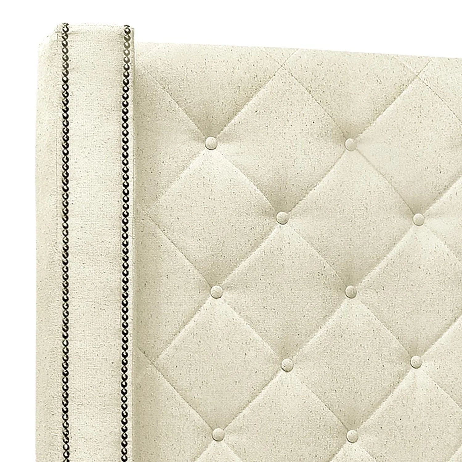 Com sua estrutura feita de madeira industrializada, espuma D23, e os frames para fixação na cama ela proporciona um suporte firme e confortável. O revestimento em linho da Cabeceira Capitonê adiciona uma textura rica e sofisticada, enquanto os detalhes em tachinhas nas laterais criam um visual clássico e atemporal. Não só serve como um ponto focal estético, mas também como uma promessa de conforto e beleza duradouros. O design da Cabeceira Estofada é pensado para complementar a decoração do quarto, adicionando um charme especial que remete à grandiosidade e ao luxo dos tempos antigos.