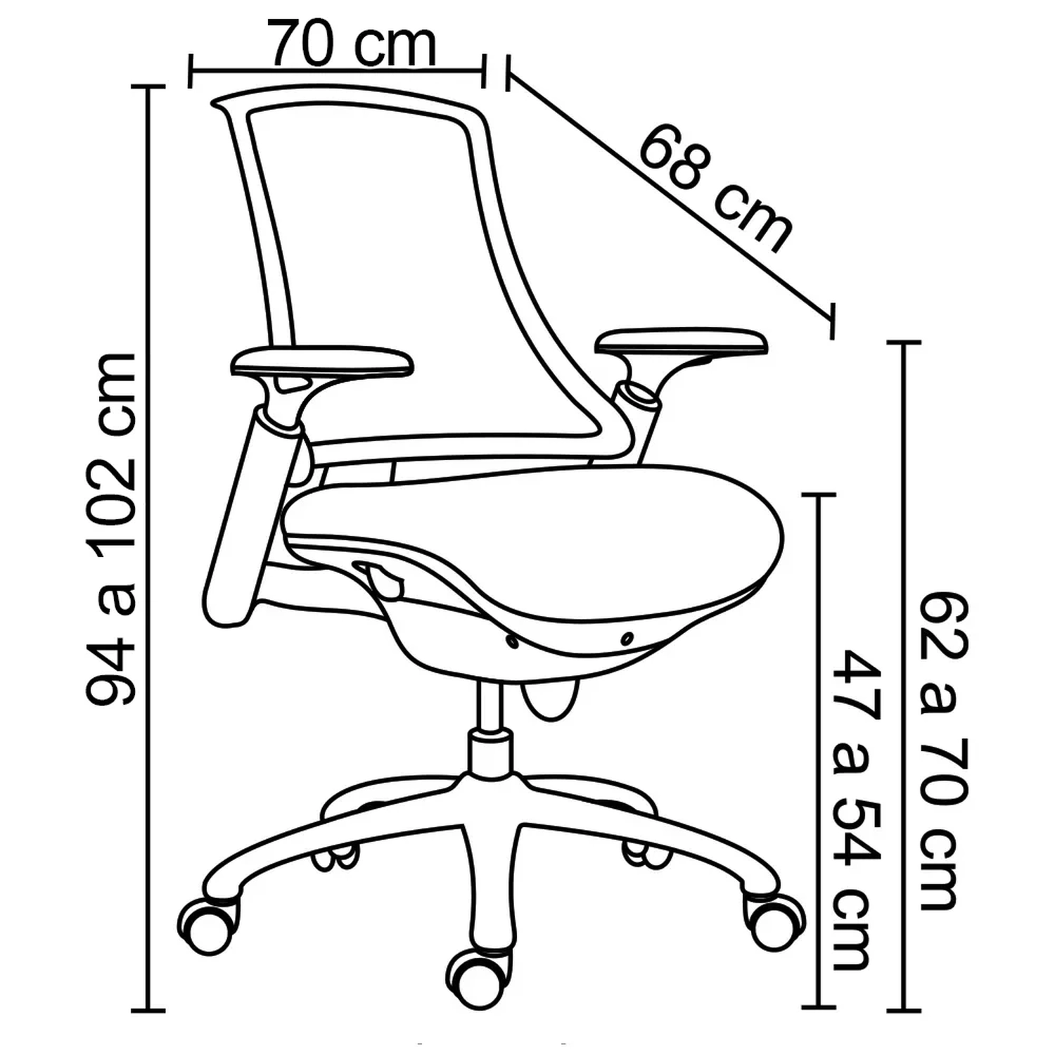 - Braços com regulagem de altura.