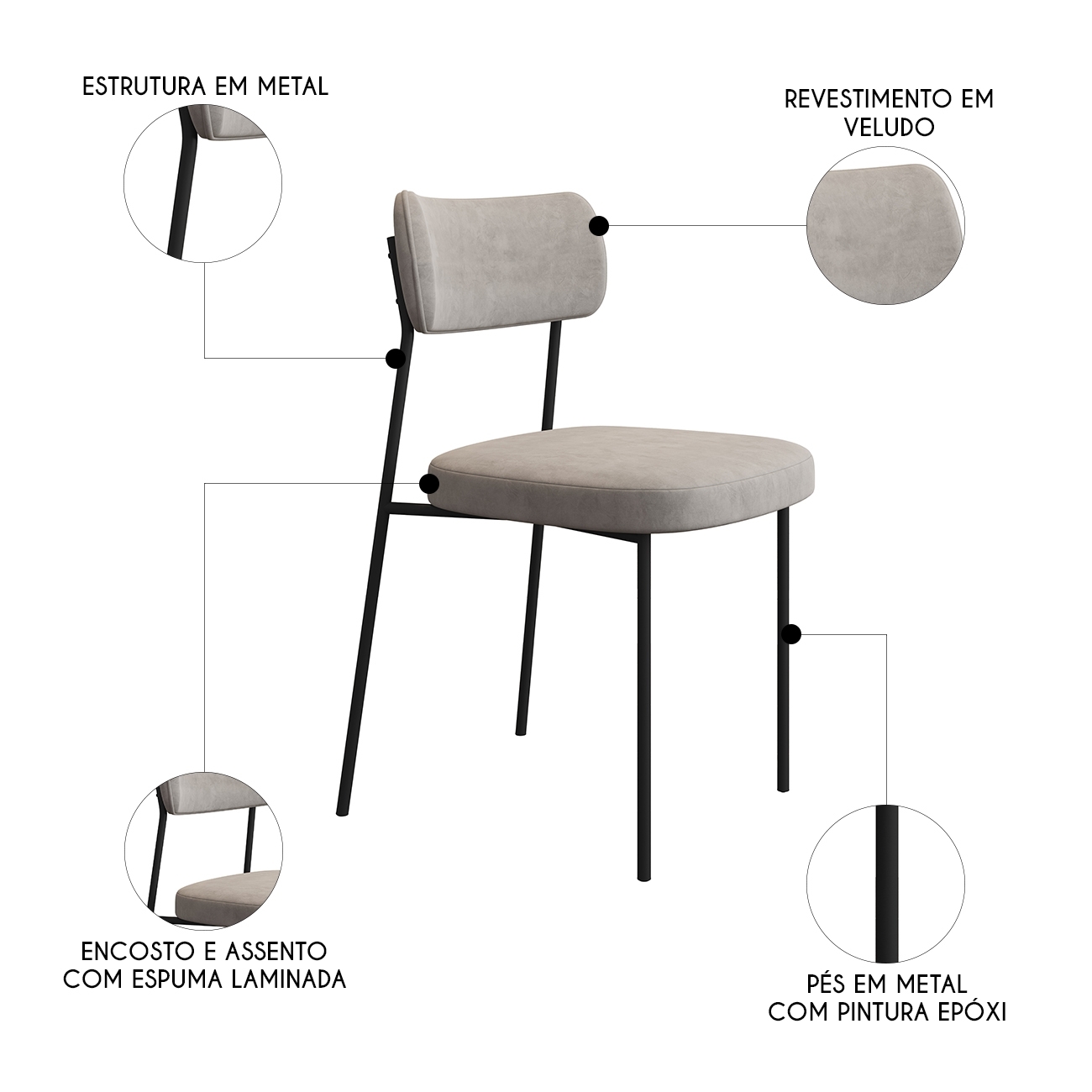 Além de toda a elegância, a Cadeira Estofada oferece conforto e resistência ideais para o dia a dia. Sua estrutura em aço carbono com acabamento em pintura epóxi garante durabilidade e estabilidade, proporcionando uma base segura e duradoura. O assento e encosto, estofados em espuma laminada e revestidos em Veludo, tornam cada uso ainda mais agradável, oferecendo um toque suave e convidativo. Esta Cadeira Versátil é perfeita para complementar sua Sala de Jantar, sala de estar ou até mesmo o escritório, adicionando estilo e funcionalidade a qualquer ambiente.