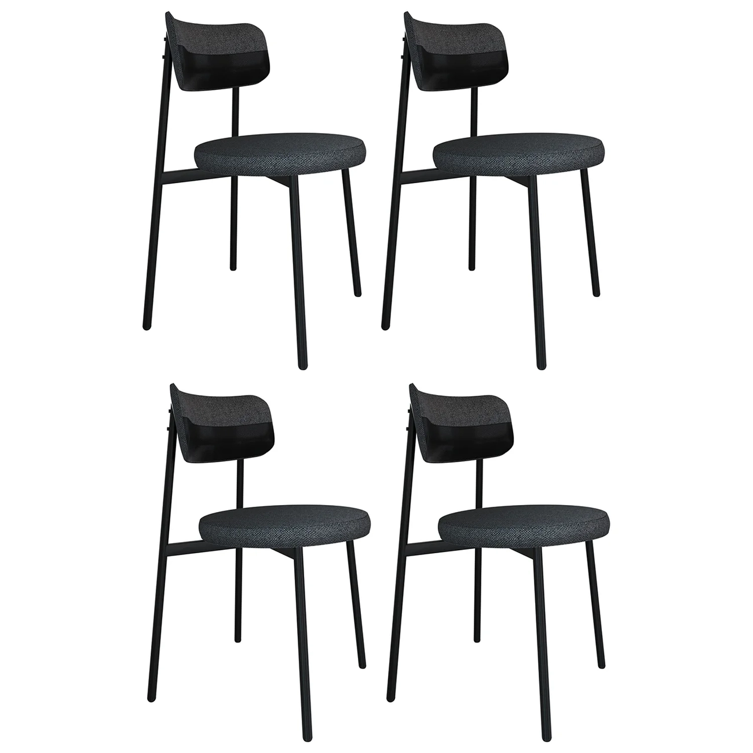 A Cadeira de Jantar Estofada Kit 4 Nyka M25 Linho Grafite/Sintético Preto, da Mpozenato se destaca pela sua combinação de elegância e design moderno, tornando-a uma escolha altamente versátil para diversos ambientes.