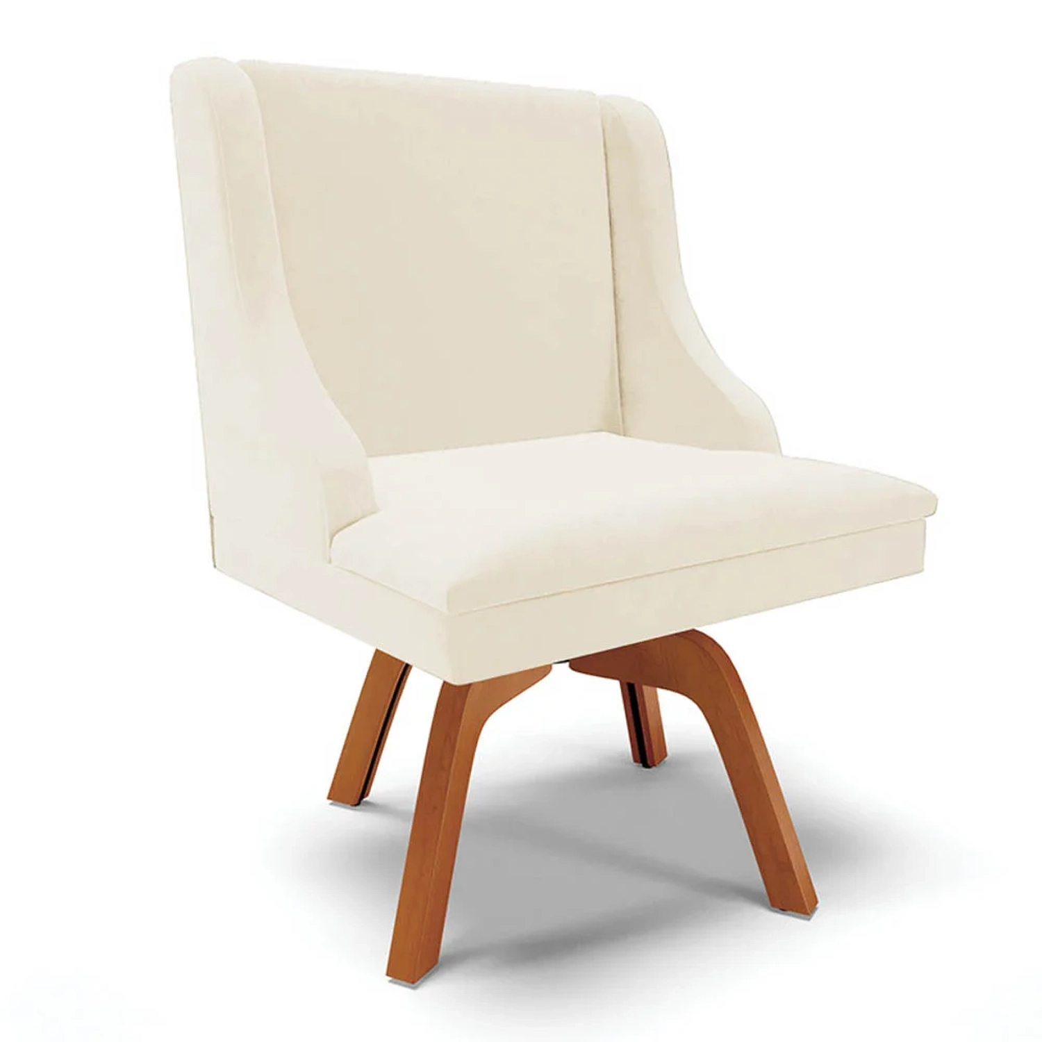 A Cadeira Estofada para Sala de Jantar Base Giratória de Madeira Lia Veludo Bege, da Ibiza, é perfeita para você que busca elegância e conforto, confira os detalhes!