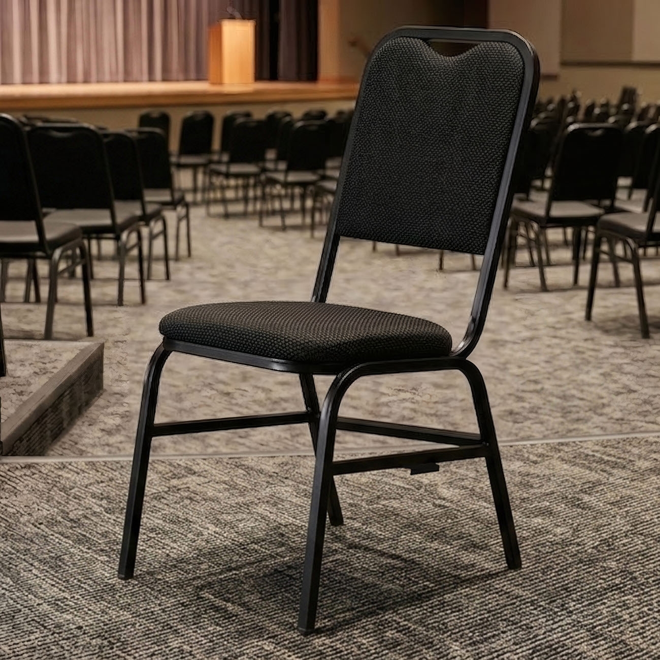 O sistema de encaixe lateral da Cadeira Hoteleirapermite formar longarinas, enquanto o design empilhável facilita transporte e armazenamento. Essa versatilidade atende diferentes layouts e amplia o uso em Sala De Eventos, igrejas, hotéis e centros de convenções, reforçando a funcionalidade da Cadeira Empilhável.