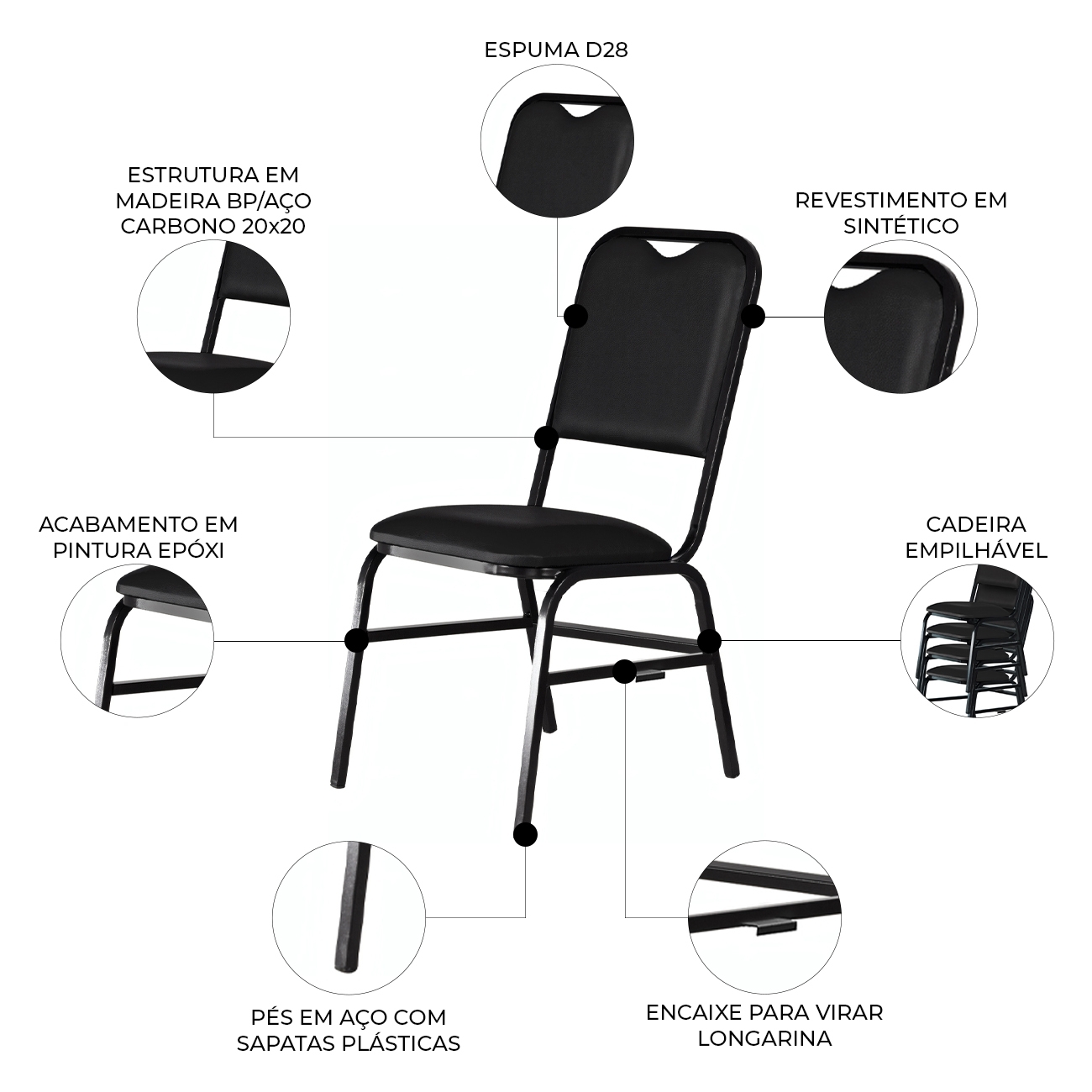 - Cadeira empilhável.