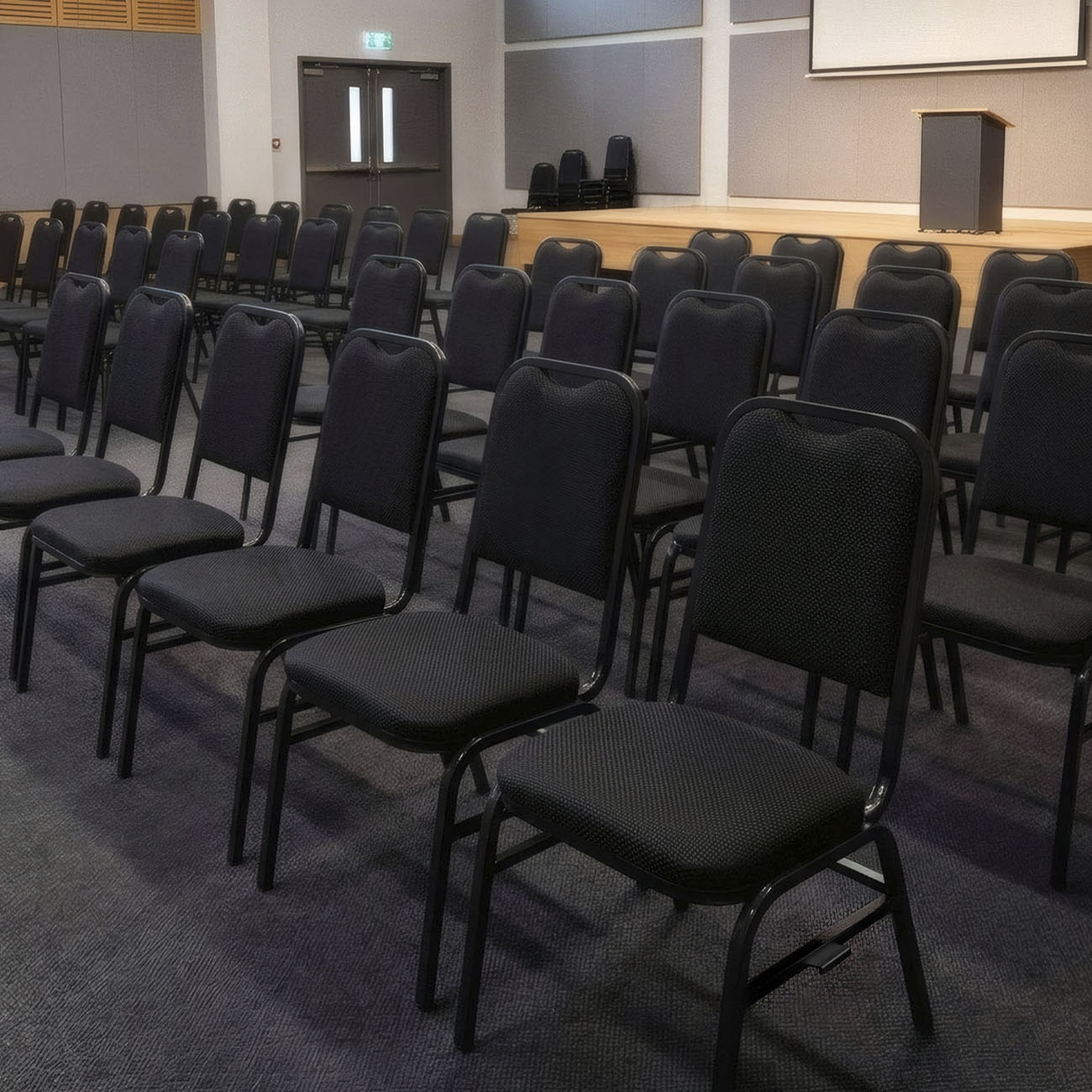 Pensada para eventos que exigem conforto prolongado, a peça oferece ergonomia e estabilidade durante longos períodos de uso. O formato anatômico favorece a postura e valoriza ambientes profissionais como Auditório e espaços corporativos.