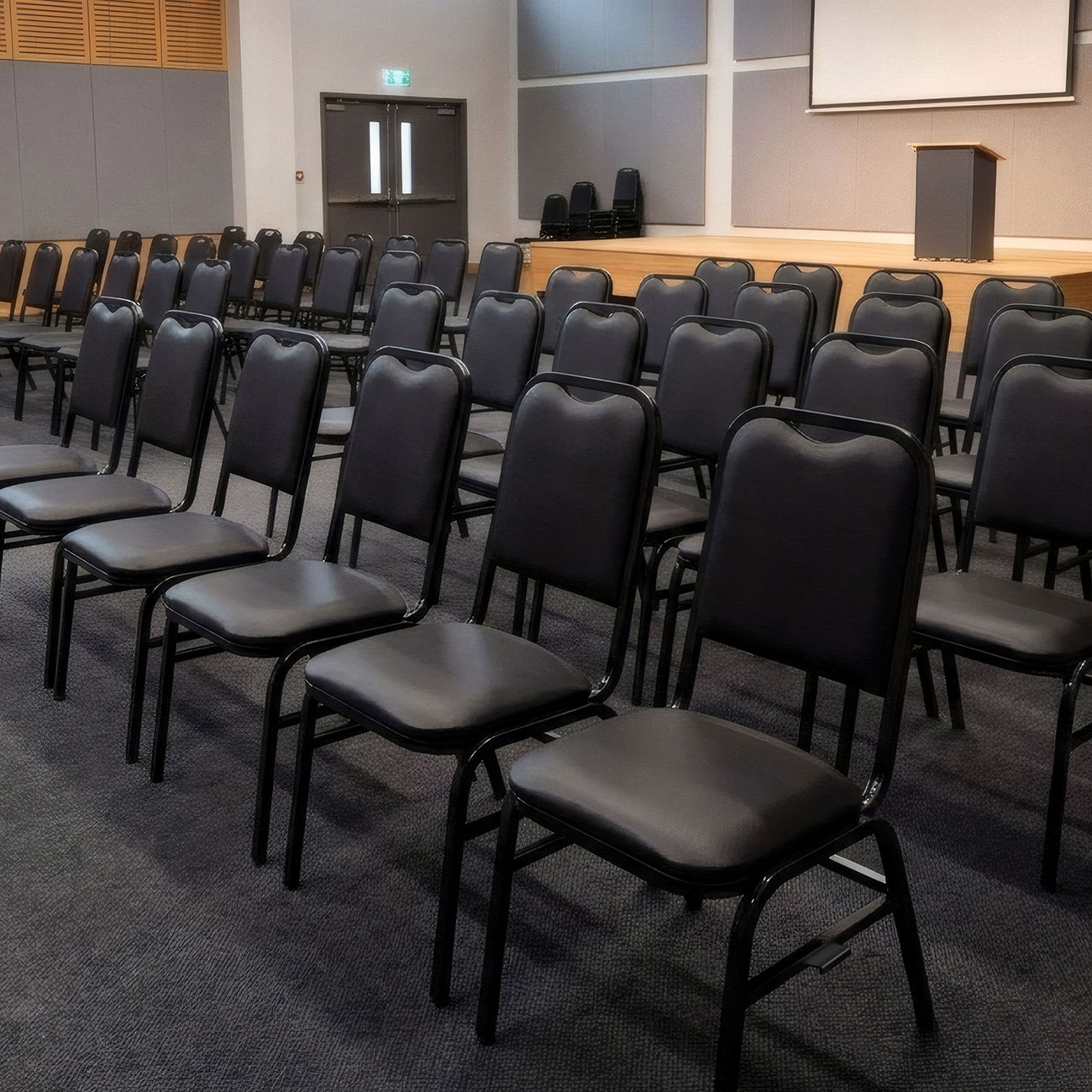 Pensada para eventos que exigem conforto prolongado, a peça oferece ergonomia e estabilidade durante longos períodos de uso. O formato anatômico favorece a postura e valoriza ambientes profissionais como Auditório e espaços corporativos.