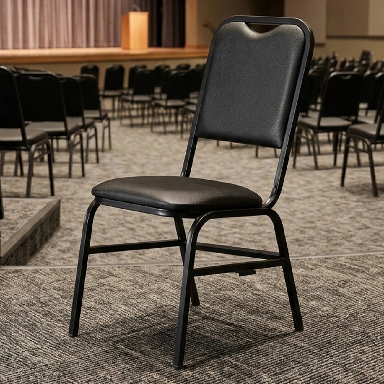 O assento e encosto estruturado em madeira recebem espuma de alta densidade, proporcionando conforto equilibrado e suporte adequado. O sistema de encaixe lateral da Cadeira Hoteleirapermite formar longarinas, enquanto o design empilhável facilita transporte e armazenamento. Essa versatilidade atende diferentes layouts e amplia o uso em Sala De Eventos, igrejas, hotéis e centros de convenções, reforçando a funcionalidade da Cadeira Empilhável.