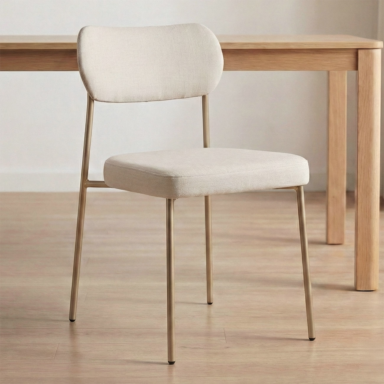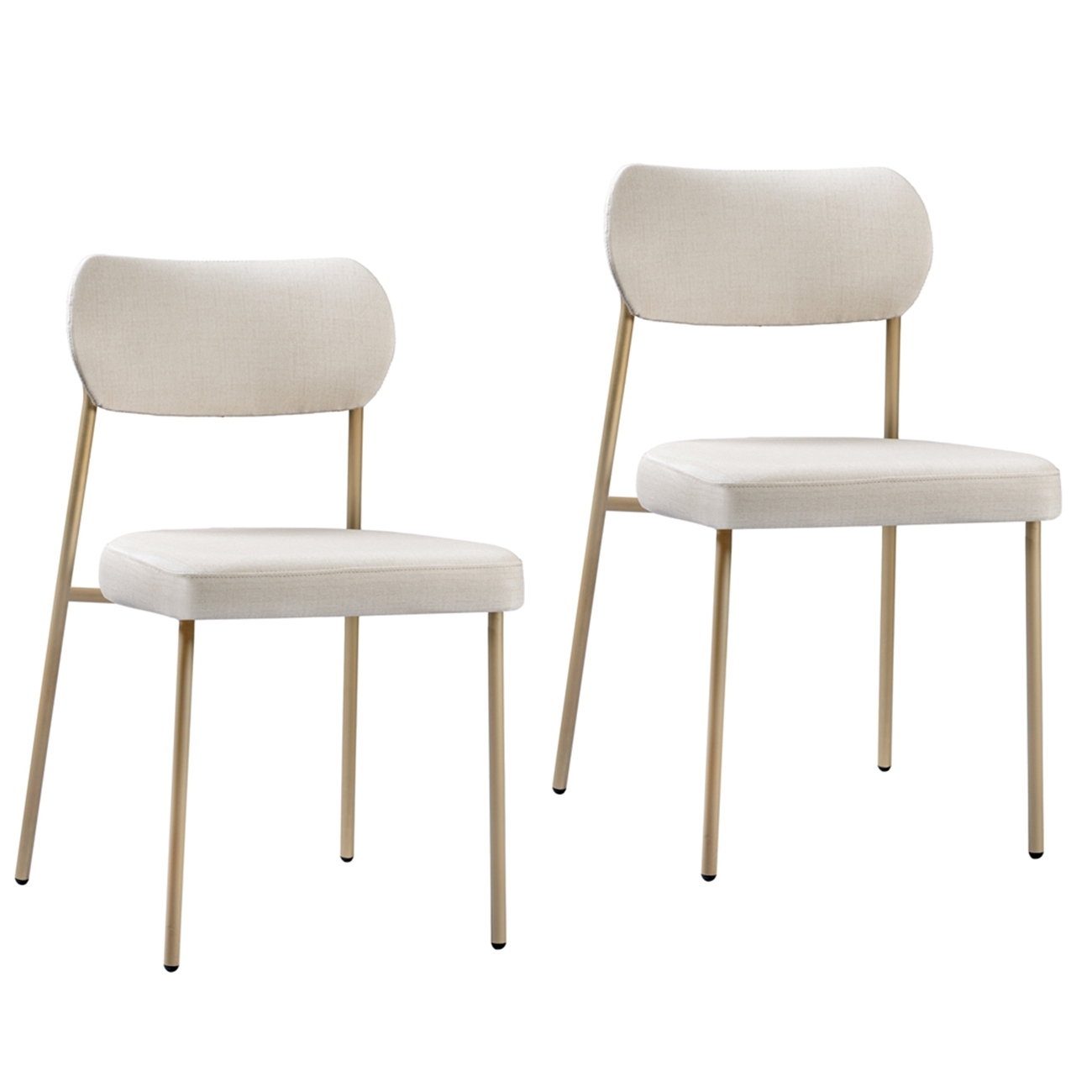 Cadeira Jantar Estofada Pé Metal Rosê Kit 2 Lavy Linho Bege S08 - Mpozenato