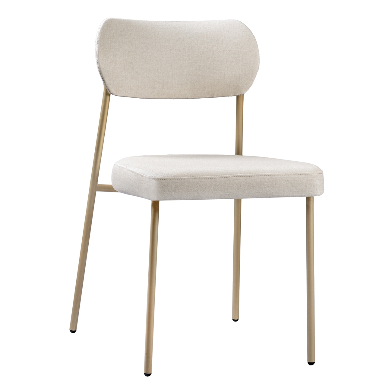 Cadeira Jantar Estofada Pé Metal Rosê Lavy Linho Bege S08 - Mpozenato